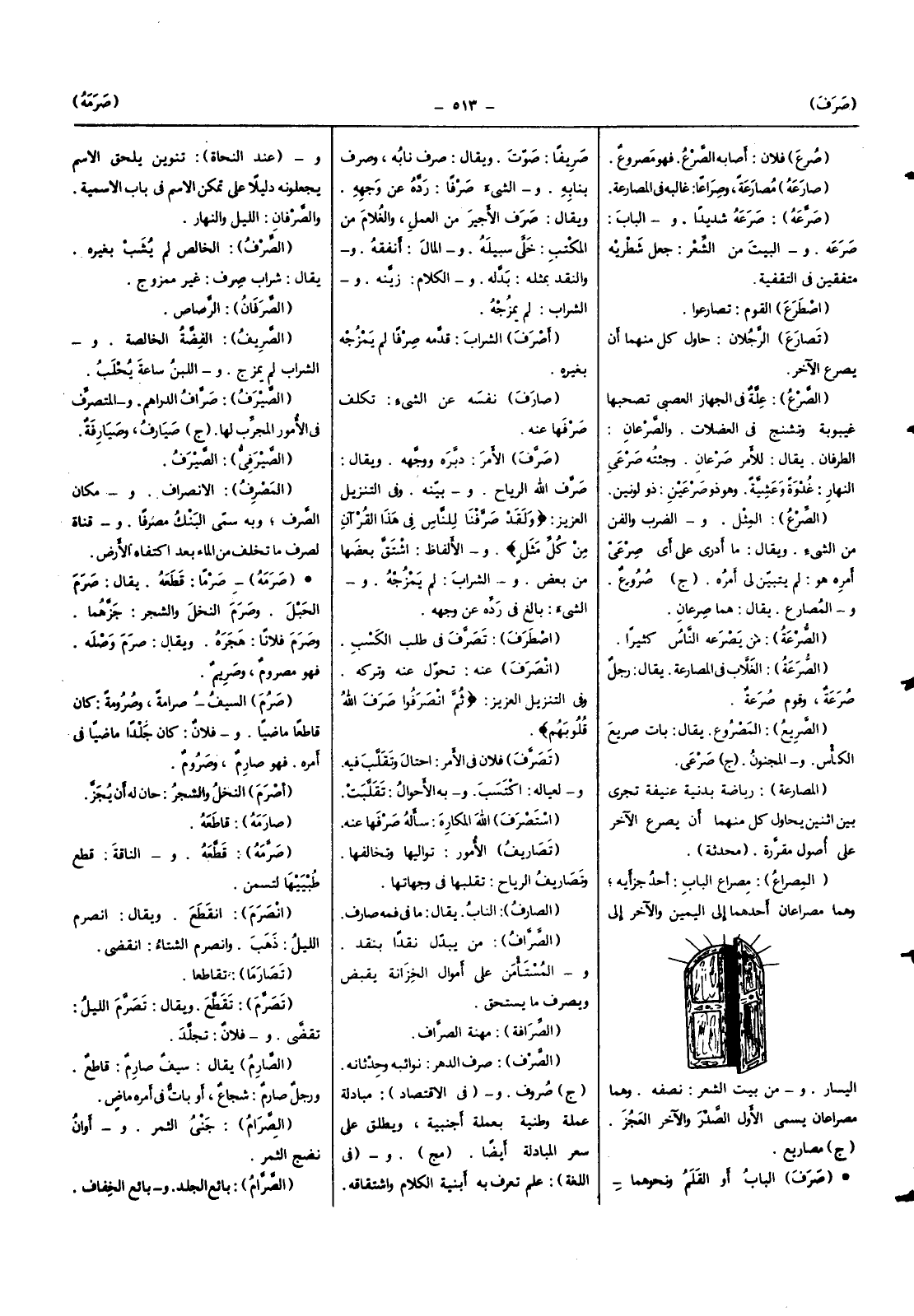(صرف) الْأَمر دبره وَوَجهه وَيُقَال صرف الله الرِّيَاح وَبَينه وَفِي التَّنْزِيل الْعَزِيز {وَلَقَد صرفنَا للنَّاس فِي هَذَا الْقُرْآن من كل مثل} والألفاظ اشتق بَعْضهَا من بعض وَالشرَاب لم يمزجه وَالشَّيْء بَالغ فِي رده عَن وَجهه