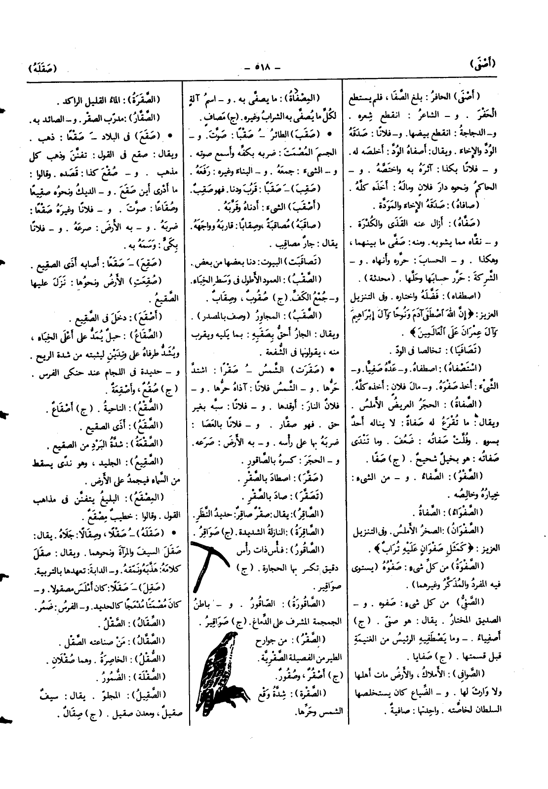 (الصوافي) الْأَمْلَاك وَالْأَرْض مَاتَ أَهلهَا وَلَا وَارِث لَهَا والضياع كَانَ يستخلصها السُّلْطَان لخاصته واحدتها صَافِيَة