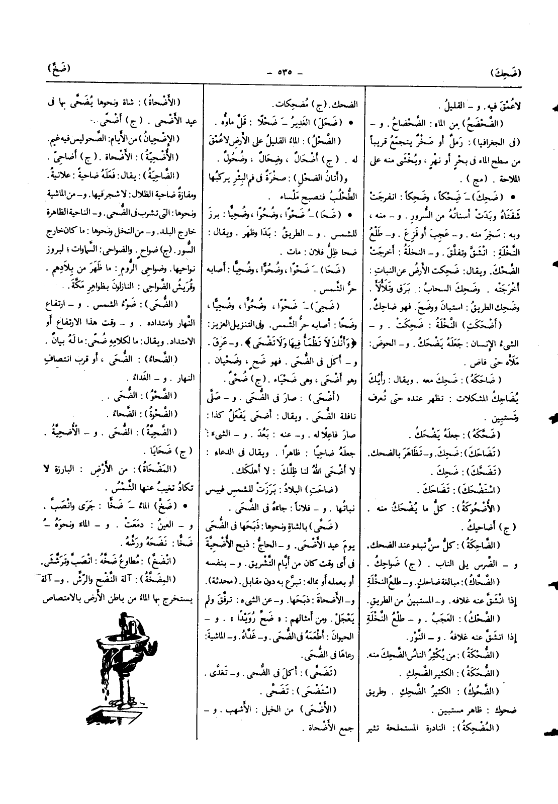 (ضحى) ضحوا وضحوا وضحيا وضحا أَصَابَهُ حر الشَّمْس وَفِي التَّنْزِيل الْعَزِيز {وَأَنَّك لَا تظمأ فِيهَا وَلَا تضحى} وعرق وَأكل فِي الضُّحَى فَهُوَ ضح وضحيان وَهُوَ أضحى وَهِي ضحياء (ج) ضحى
