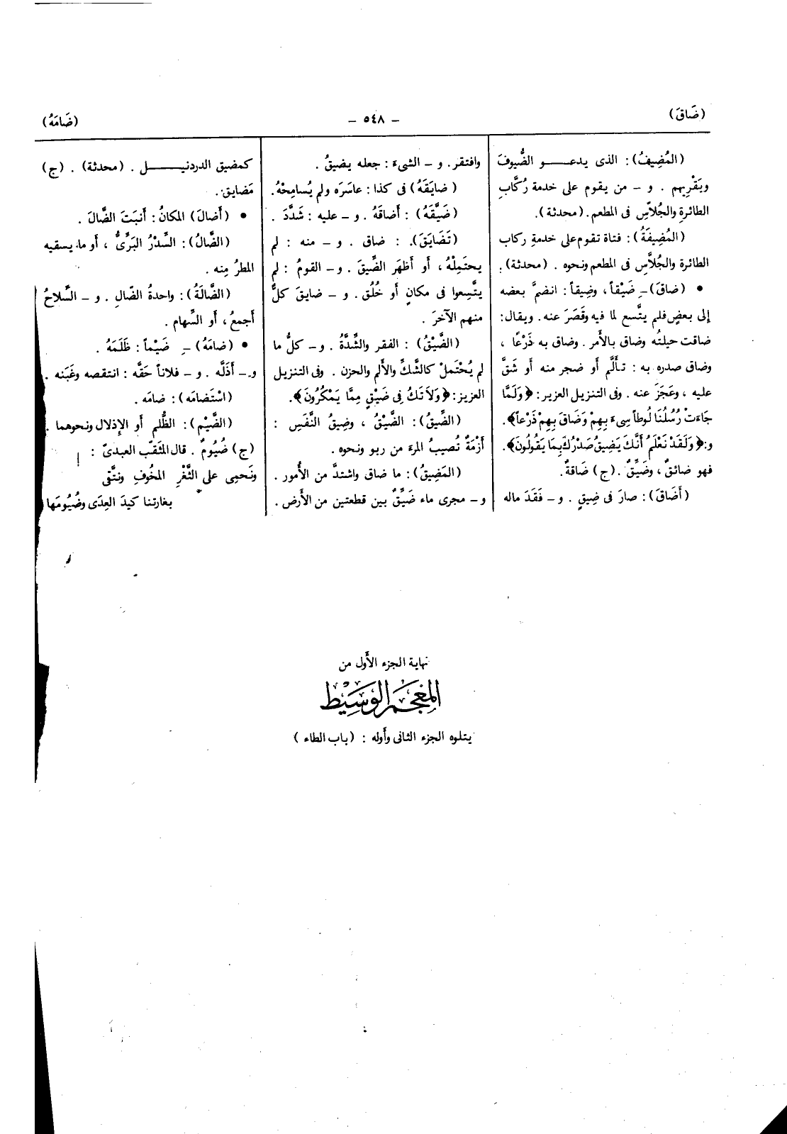 (ونحمي على الثغر الْمخوف ونتقي ... بغارتنا كيد العدى وضيومها) انْتهى الْجُزْء الأول من المعجم الْوَسِيط