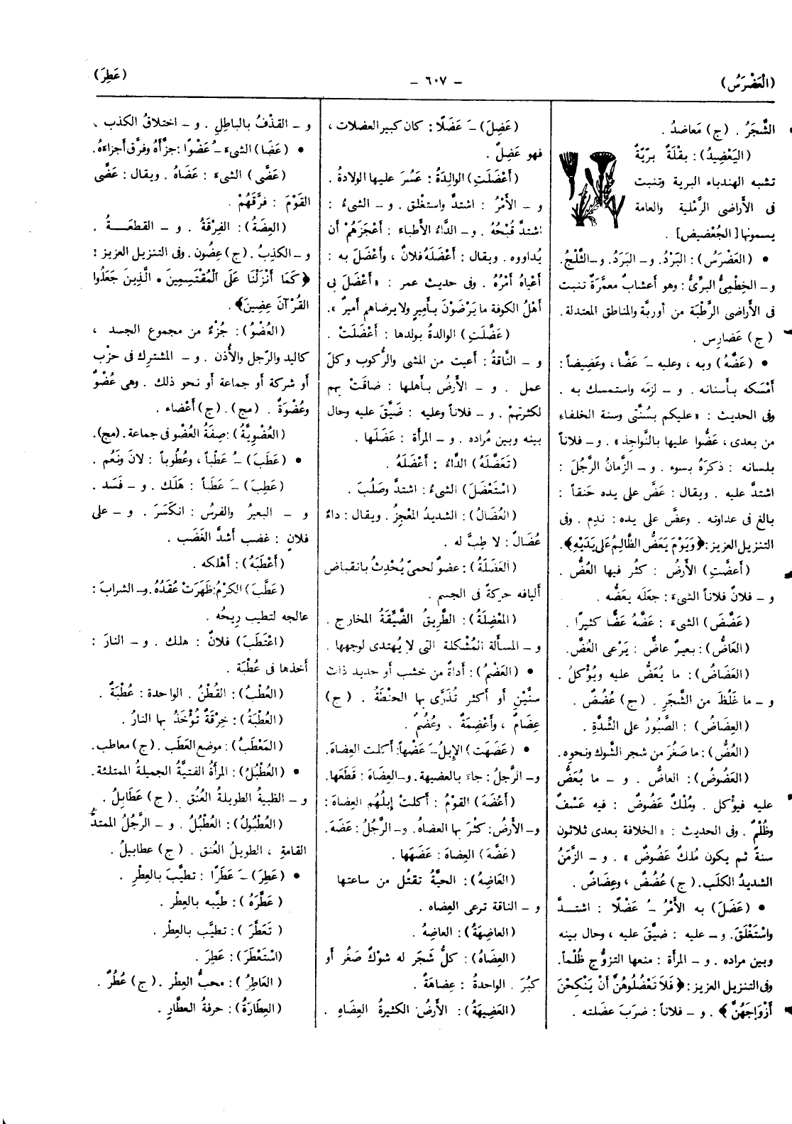 وَبِه وَعَلِيهِ عضا وعضيضا أمْسكهُ بِأَسْنَانِهِ وَلَزِمَه واستمسك بِهِ وَفِي الحَدِيث (عَلَيْكُم بِسنتي وَسنة الْخُلَفَاء من بعدِي عضوا عَلَيْهَا بالنواجذ) وَفُلَانًا بِلِسَانِهِ ذكره بِسوء وَالزَّمَان الرجل اشْتَدَّ عَلَيْهِ وَيُقَال عض على يَده حنقا بَالغ فِي عداوته وعض على يَده نَدم وَفِي التَّنْزِيل الْعَزِيز {وَيَوْم يعَض الظَّالِم على يَدَيْهِ}