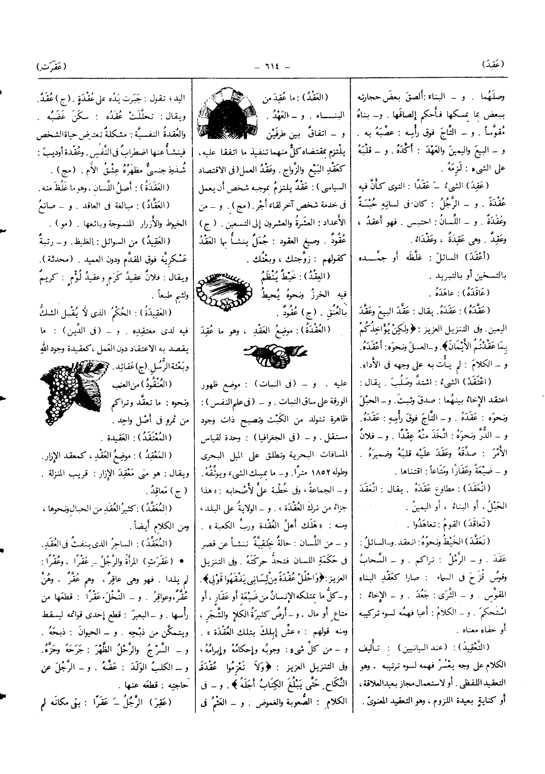 (عقد) الشَّيْء عقدا التوى كَأَن فِيهِ عقدَة وَالرجل كَانَ فِي لِسَانه حبسة وعقدة وَاللِّسَان احْتبسَ فَهُوَ أعقد وَعقد وَهِي عقدَة وعقداء