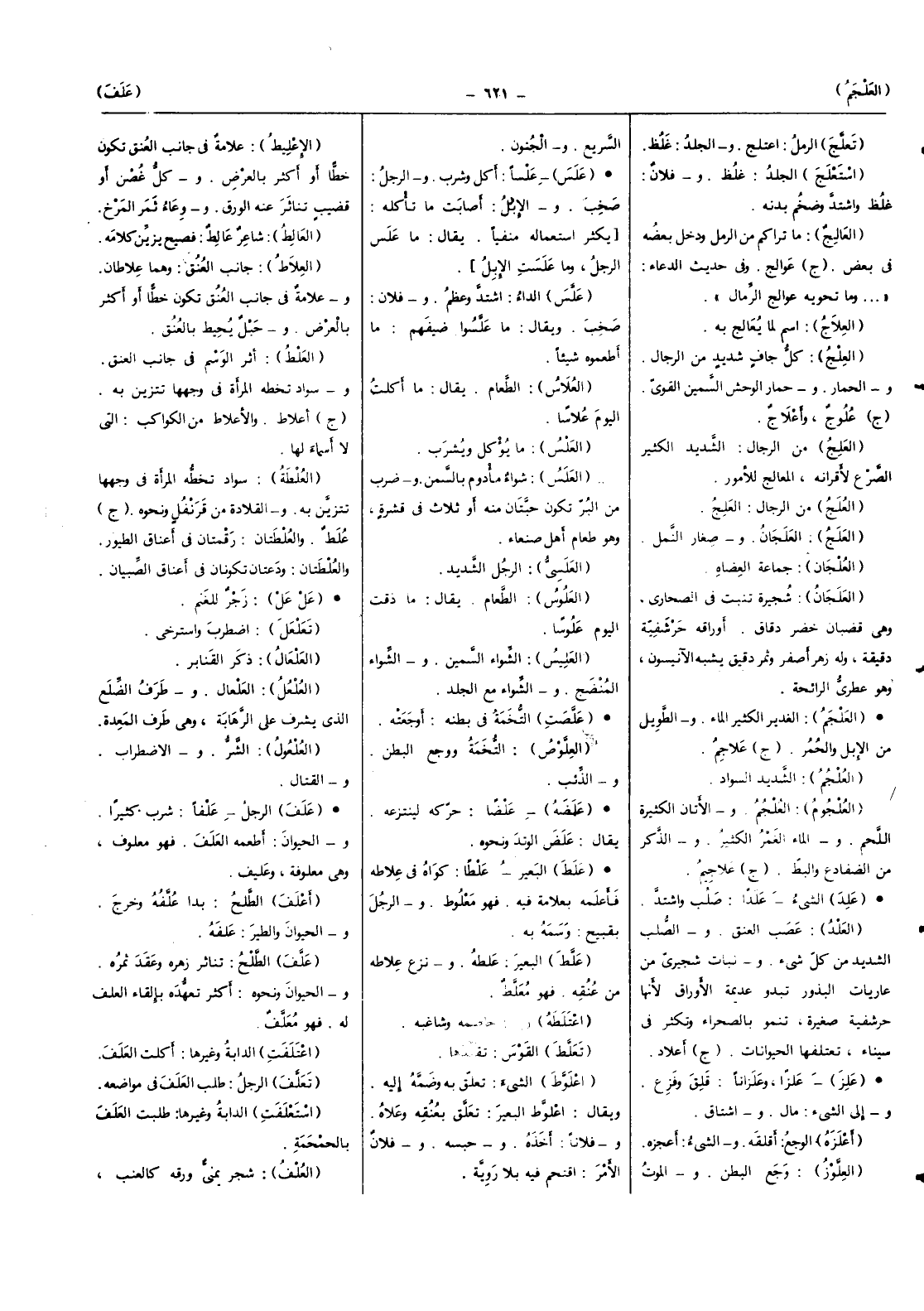 (العلجوم) العلجم والأتان الْكَثِيرَة اللَّحْم وَالْمَاء الْغمر الْكثير وَالذكر من الضفادع والبط (ج) علاجيم