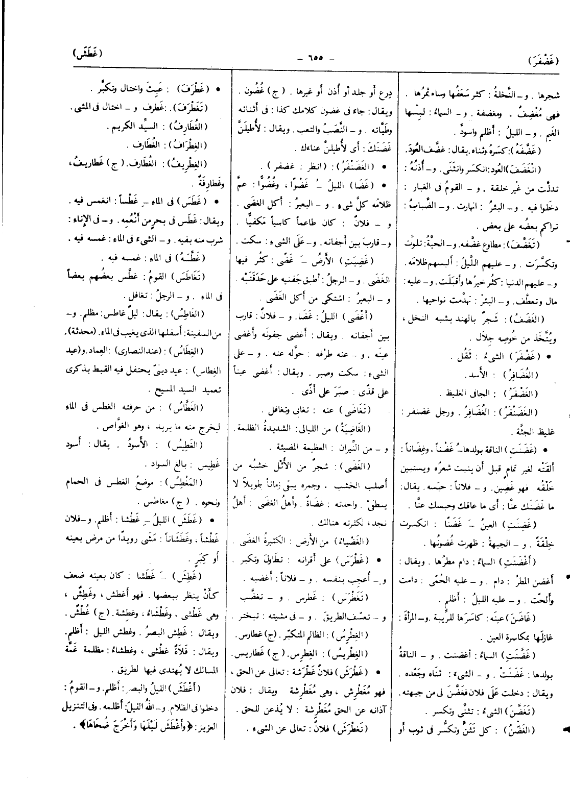 (تغضف) مُطَاوع غضفه والحية تَلَوت وتكسرت وَعَلَيْهِم اللَّيْل ألبسهم ظلامه وَعَلَيْهِم الدُّنْيَا كثر خَيرهَا وَأَقْبَلت وَعَلِيهِ مَال وَتعطف والبئر تهدمت نَوَاحِيهَا