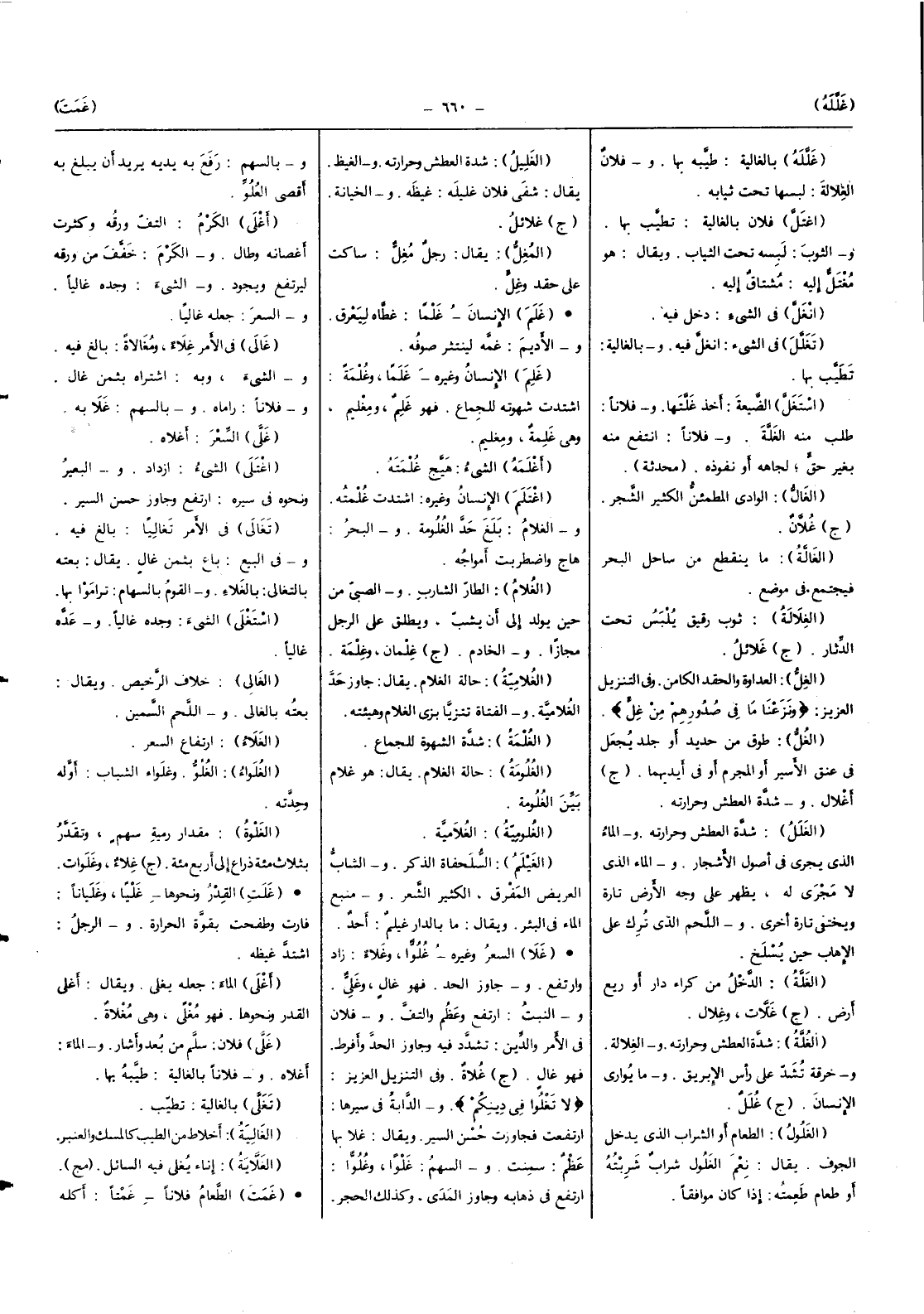 (تغلل) فِي الشَّيْء انغل فِيهِ وبالغالية تطيب بهَا