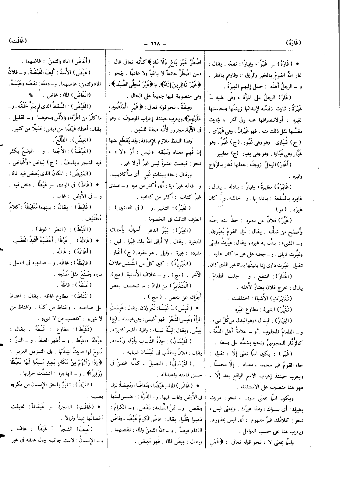 (غير) فلَان عَن بعيره حط عَنهُ رَحْله وَأصْلح من شَأْنه يُقَال نزل الْقَوْم يغيرون وَالشَّيْء بدل بِهِ غَيره يُقَال غيرت دَابَّتي وغيرت ثِيَابِي وَجعله على غير مَا كَانَ عَلَيْهِ تَقول غيرت دَاري إِذا بنيتها بِنَاء غير الَّذِي كَانَ