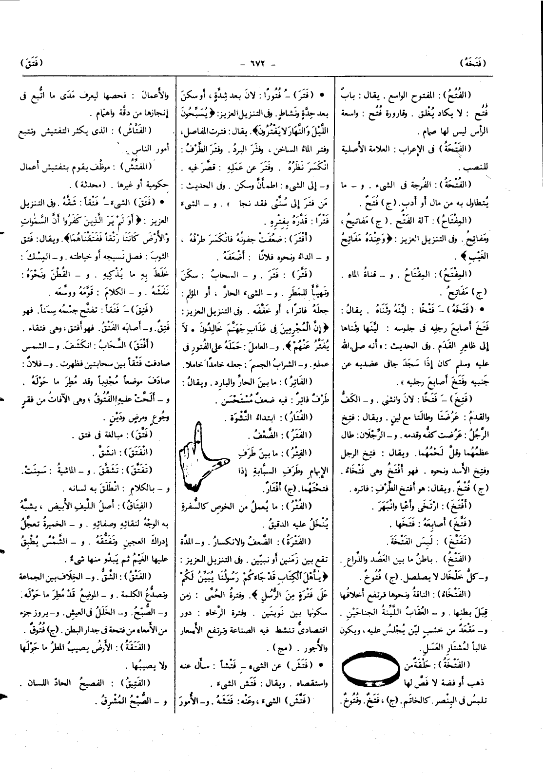 (الْفَتْح) المفتوح الْوَاسِع يُقَال بَاب فتح لَا يكَاد يغلق وقارورة فتح وَاسِعَة الرَّأْس لَيْسَ لَهَا صمام