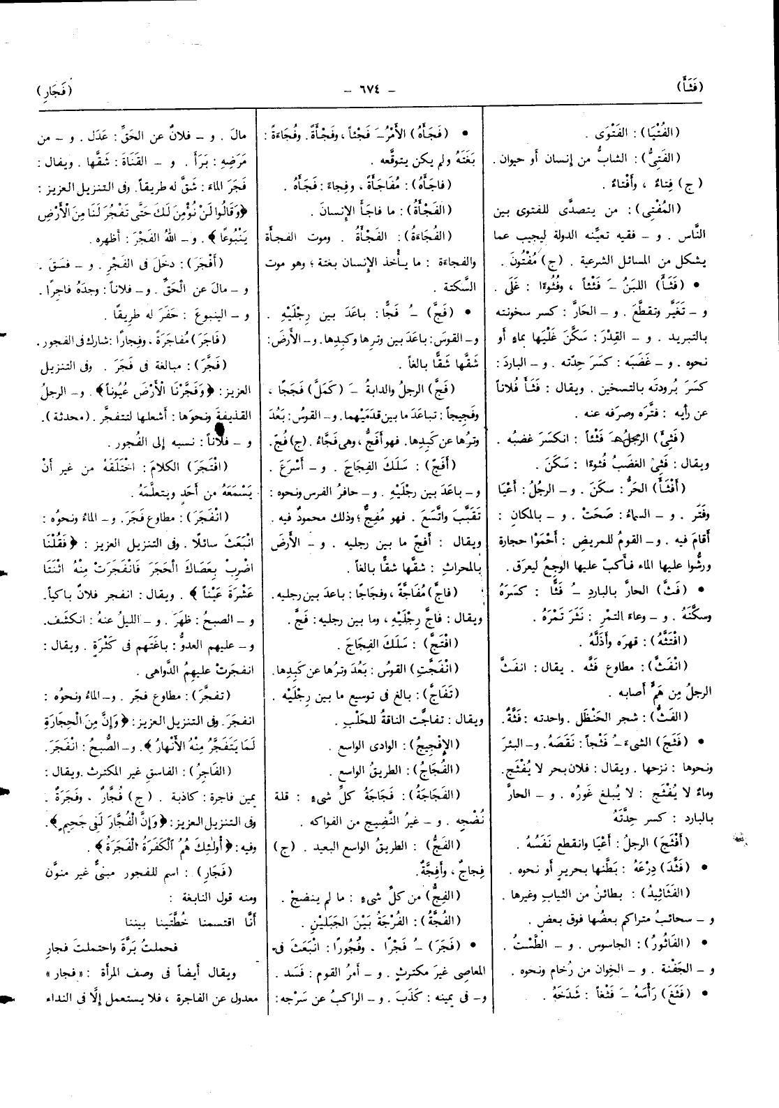 (أفجر) دخل فِي الْفجْر وَفسق وَمَال عَن الْحق وَفُلَانًا وجده فَاجِرًا والينبوع حفر لَهُ طَرِيقا