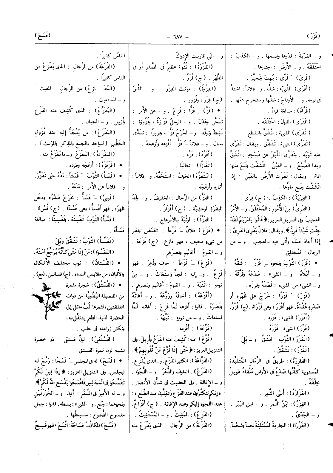 فزا فزع وَعَن الْأَمر تنحى وَعدل وَالرجل فزازة وفزوزة نشط وتوقد وَالْجرْح فزا وفزيزا تندى وسال وَفُلَانًا فزا أفزعه وأزعجه