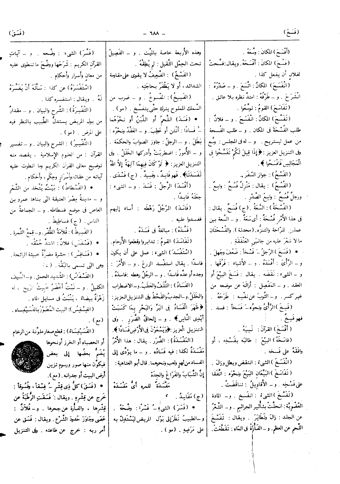 (الفسح) يُقَال منزل فسح وَاسع وَرجل فسح وَاسع الصَّدْر