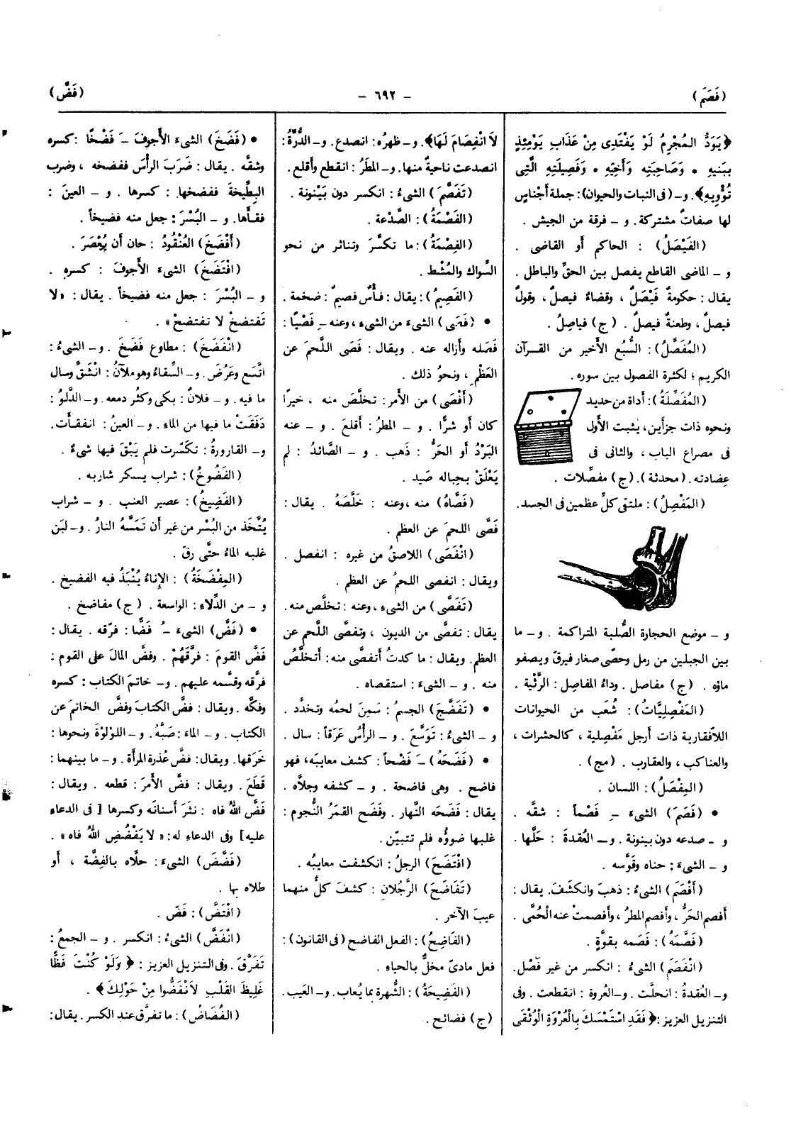 (انفضخ) مُطَاوع فضخ وَالشَّيْء اتَّسع وَعرض والسقاء وَهُوَ ملآن انْشَقَّ وسال مَا فِيهِ وَفُلَان بَكَى وَكثر دمعه والدلو دفقت مَا فِيهَا من المَاء وَالْعين انفقأت والقارورة تَكَسَّرَتْ فَلم يبْق فِيهَا شَيْء