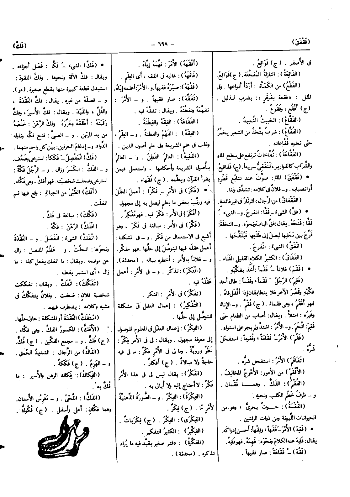 (الْفِقْه) الْفَهم والفطنة وَالْعلم وَغلب فِي علم الشَّرِيعَة وَفِي علم أصُول الدّين