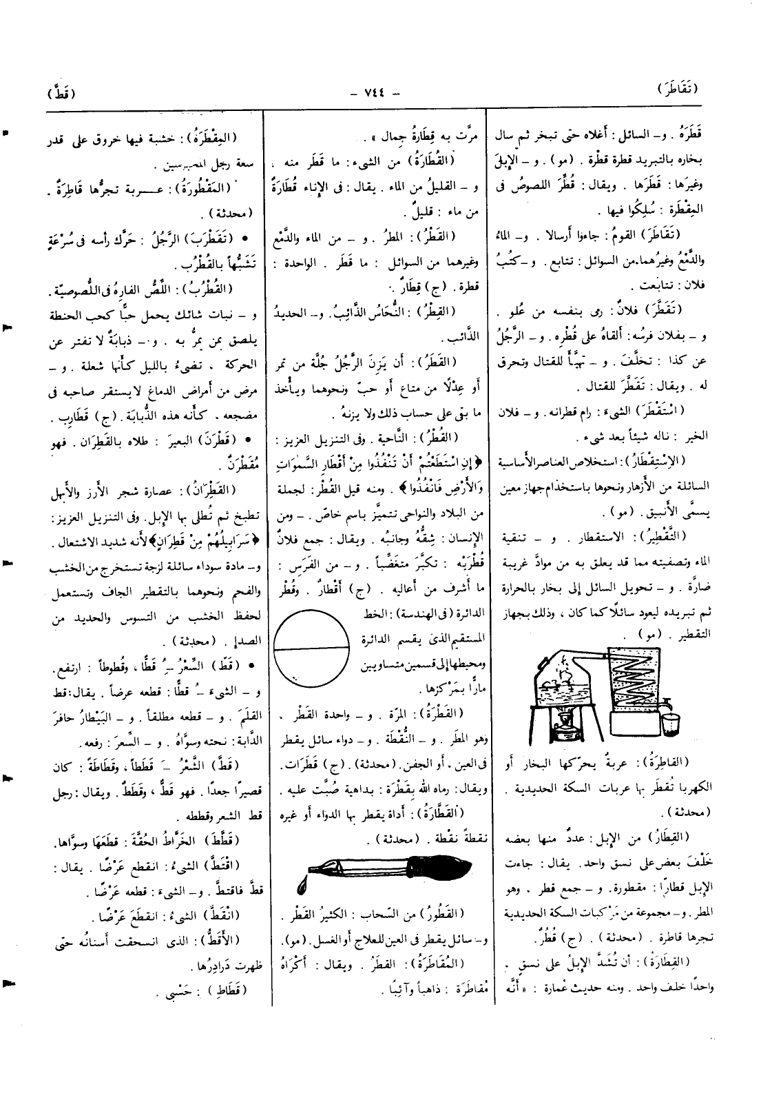 (الْقطر) الْمَطَر وَمن المَاء والدمع وَغَيرهمَا من السوائل مَا قطر الْوَاحِدَة قَطْرَة (ج) قطار