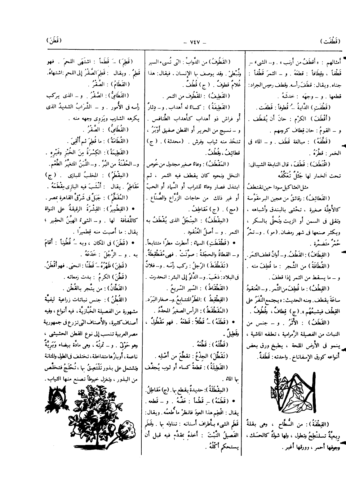 (قطم) قطما اشْتهى اللَّحْم فَهُوَ قطم وَيُقَال قطم الصَّقْر إِلَى اللَّحْم اشتهاه