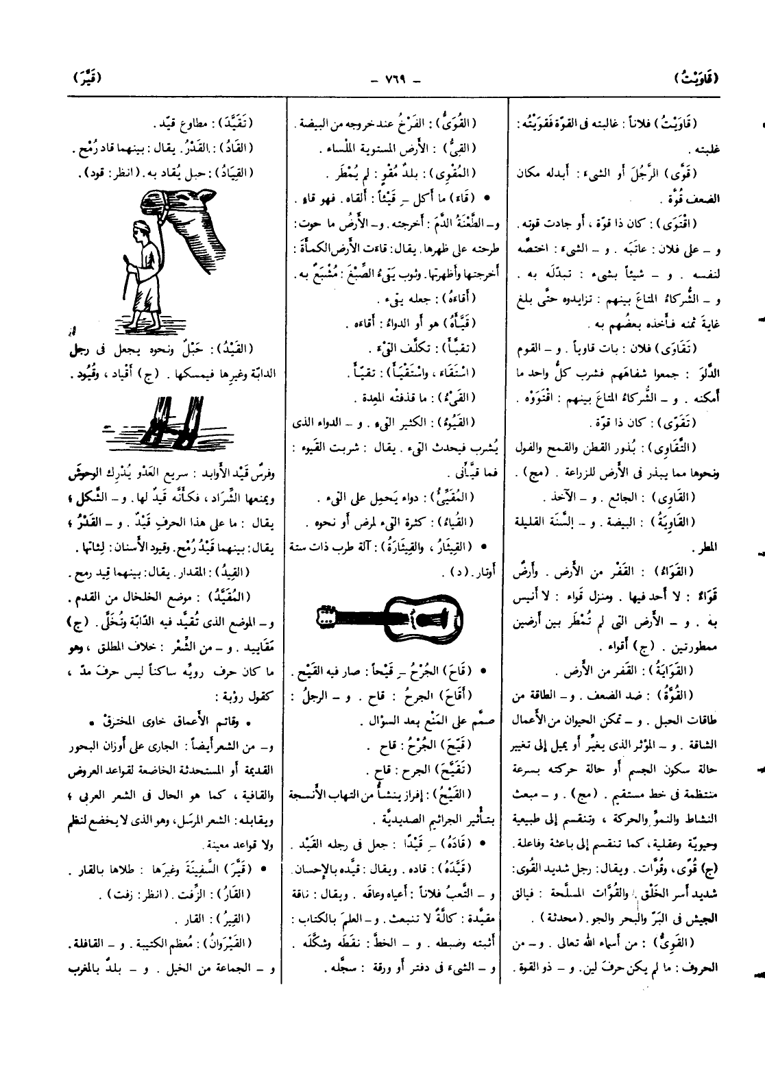 (الْقَيْد) حَبل وَنَحْوه يَجْعَل فِي رجل الدَّابَّة وَغَيرهَا فيمسكها (ج) أقياد وقيود وَفرس قيد الأوابد سريع الْعَدو يدْرك الوحوش ويمنعها الشراد فَكَأَنَّهُ قيد لَهُ والشكل يُقَال مَا على هَذَا الْحَرْف قيد وَالْقدر يُقَال بَينهمَا قيد رمح وقيود الْأَسْنَان لثاتها