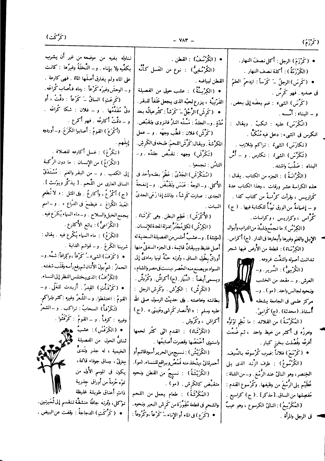 (الكرش) لكل مجتز بِمَنْزِلَة الْمعدة للْإنْسَان (مُؤَنّثَة) وعشب أملس من الفصيلة السعدية لَهُ أصل غليظ وسيقان قَائِمَة فِي الْجُزْء السفلي مِنْهَا أوراق بطول السَّاق وثمرته حَبَّة لَوْنهَا رمادي إِلَى السوَاد ويصنع مِنْهُ الْحصْر ينْبت فِي مصر وَالشَّام وَيُسمى أَيْضا السمار (ج) أكراش وكروش