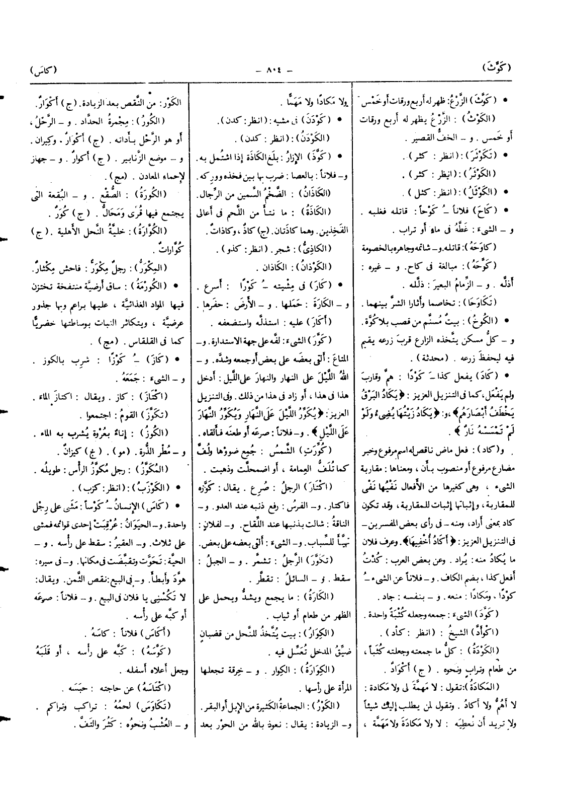 و (كَاد) فعل مَاض نَاقص لَهُ اسْم مَرْفُوع وَخبر مضارع مَرْفُوع أَو مَنْصُوب بِأَن وَمَعْنَاهَا مقاربة الشَّيْء وَهِي كَغَيْرِهَا من الْأَفْعَال نَفيهَا نفي للمقاربة وإثباتها إِثْبَات للمقاربة وَقد تكون كَاد بِمَعْنى أَرَادَ وَمِنْه فِي رَأْي بعض الْمُفَسّرين فِي التَّنْزِيل الْعَزِيز {أكاد أخفيها} وَعرف فلَان مَا يكَاد مِنْهُ يُرَاد وَعَن بعض الْعَرَب كدت أفعل كَذَا بِضَم الْكَاف وَفُلَانًا عَن الشَّيْء كودا ومكادا مَنعه وبنفسه جاد