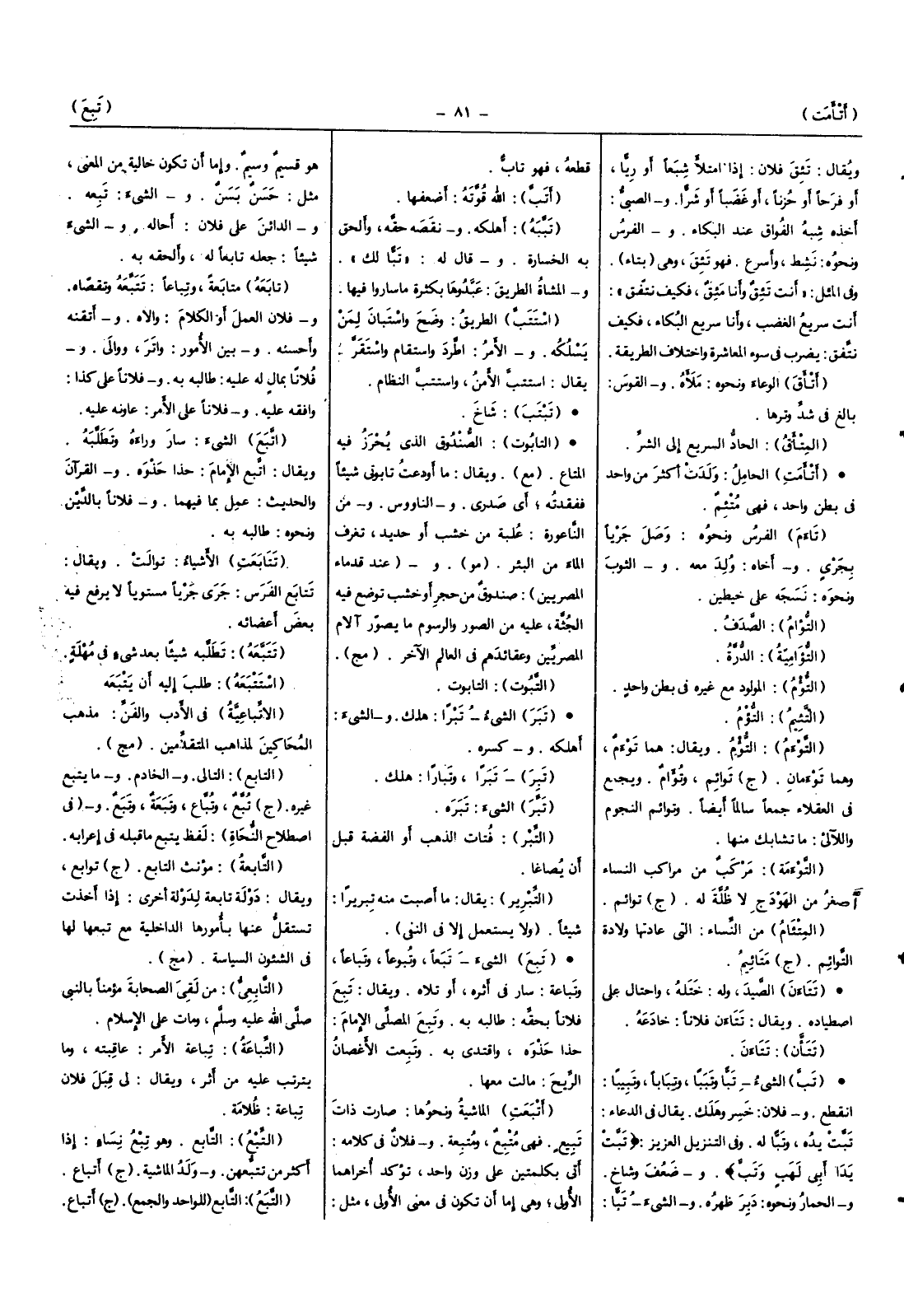 (التبع) التَّابِع (للْوَاحِد وَالْجمع) (ج) أَتبَاع