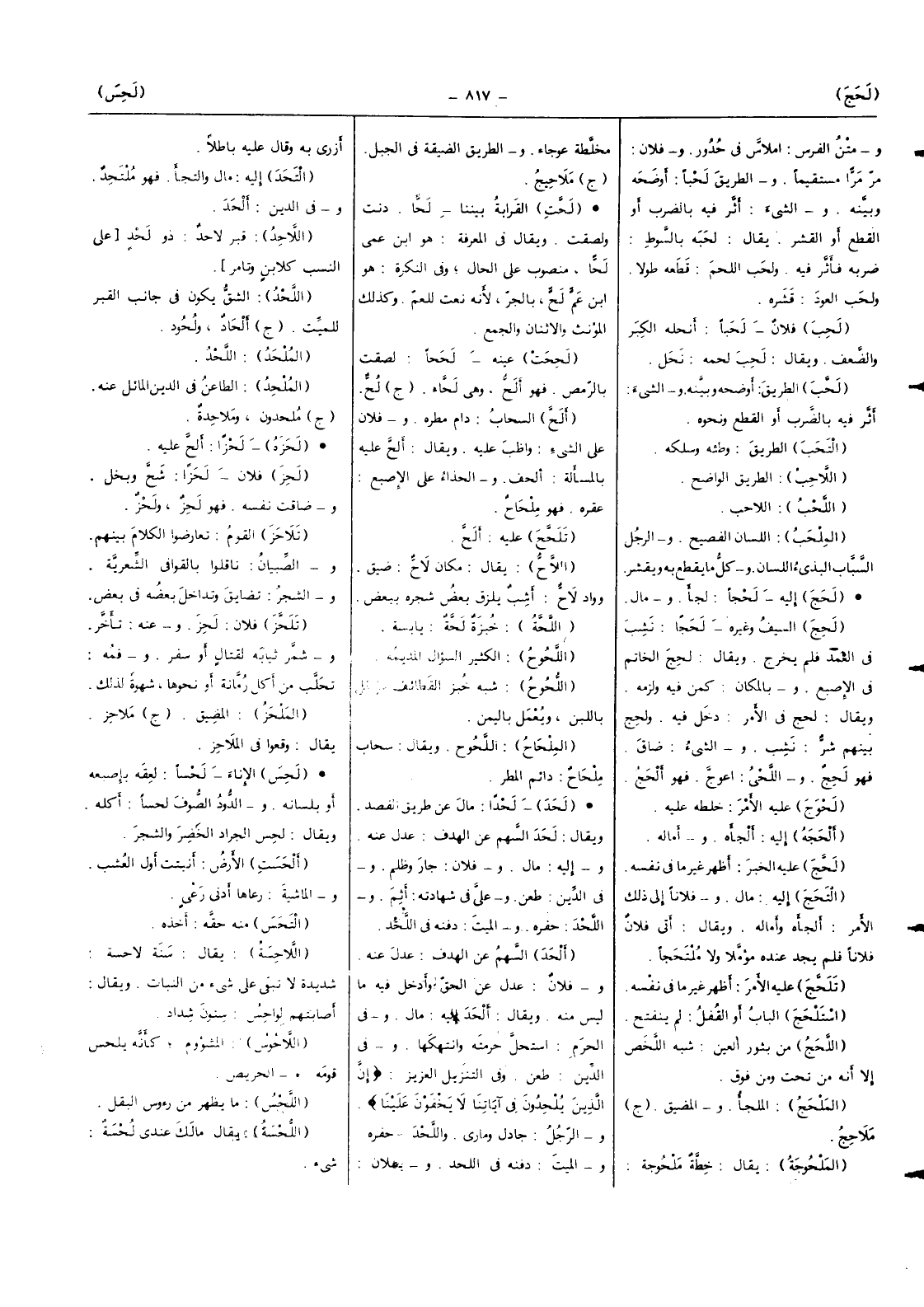 (اللاح) يُقَال مَكَان لَاحَ ضيق وواد لَاحَ أشب يلزق بعض شَجَره بِبَعْض