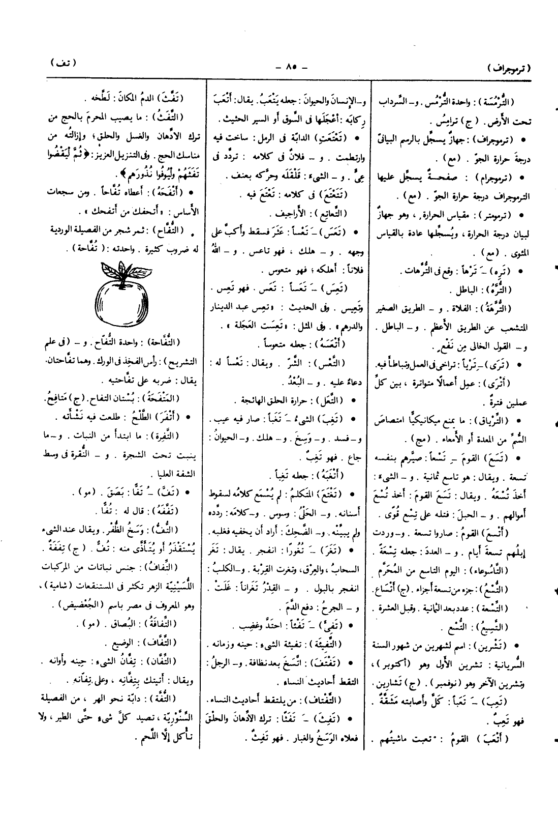 (التفتاف) من يلتقط أَحَادِيث النِّسَاء (تفث) تفثا ترك الأدهان وَالْحلق فعلاه الْوَسخ وَالْغُبَار فَهُوَ تفث