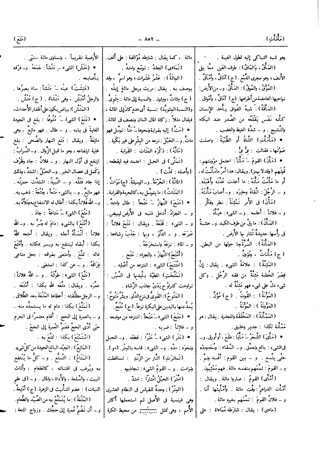 الشَّيْء متوعا بلغ فِي الْجَوْدَة الْغَايَة فِي بَابه وَطَالَ فَهُوَ ماتع وَهِي ماتعة وَيُقَال متع النَّهَار وَالضُّحَى بلغ غَايَة ارتفاعه وَهُوَ مَا قبل الزَّوَال والسراب ارْتَفع فِي أول النَّهَار وَفُلَان جاد وظرف وكمل فِي خِصَال الْخَيْر وَالْحَبل اشْتَدَّ وَذَلِكَ إِذا جاد فتله والنبيذ اشتدت حمرته فَهُوَ ماتع وبالشيء متعا ومتعة ذهب بِهِ وَالله فلَانا بِكَذَا أَطَالَ لَهُ الِانْتِفَاع بِهِ وملأه بِهِ
