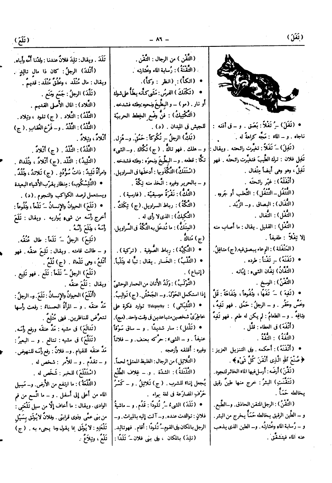 (تلع) الرجل تلعا تلع فَهُوَ تليع وَيُقَال تلع عُنُقه