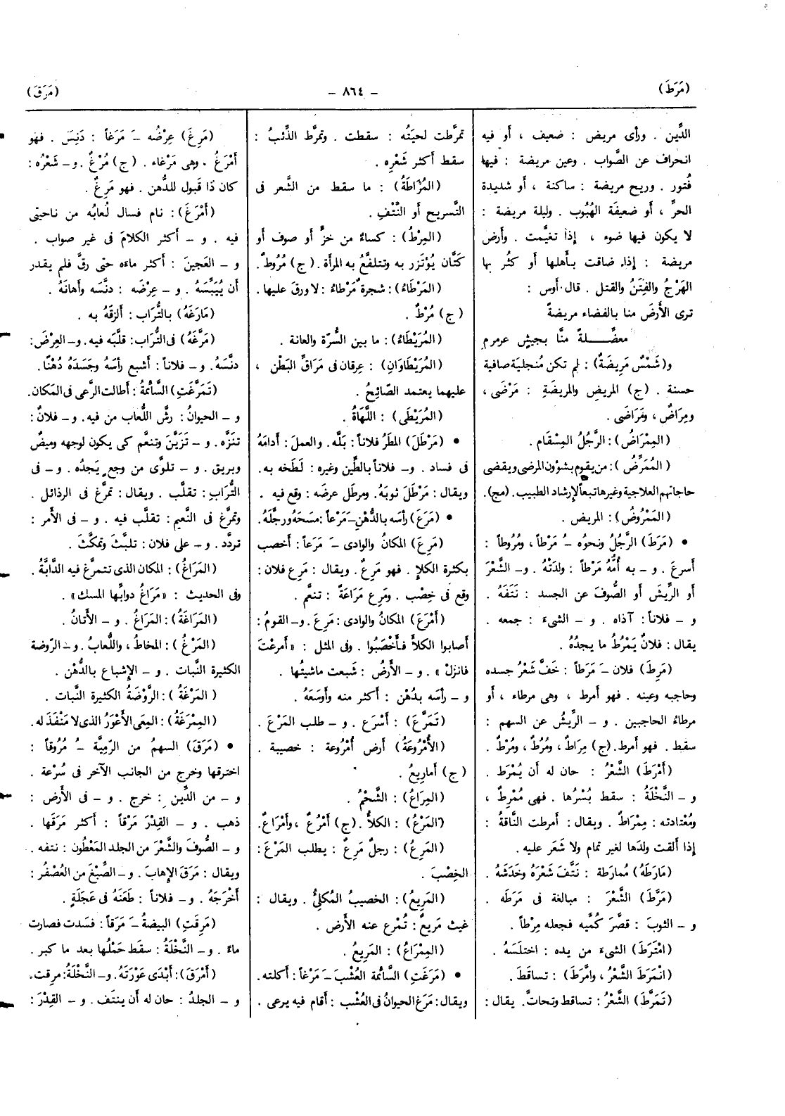 (مرغ) عرضه مرغا دنس فَهُوَ أمرغ وَهِي مرغاء (ج) مرغ وشعره كَانَ ذَا قبُول للدهن فَهُوَ مرغ