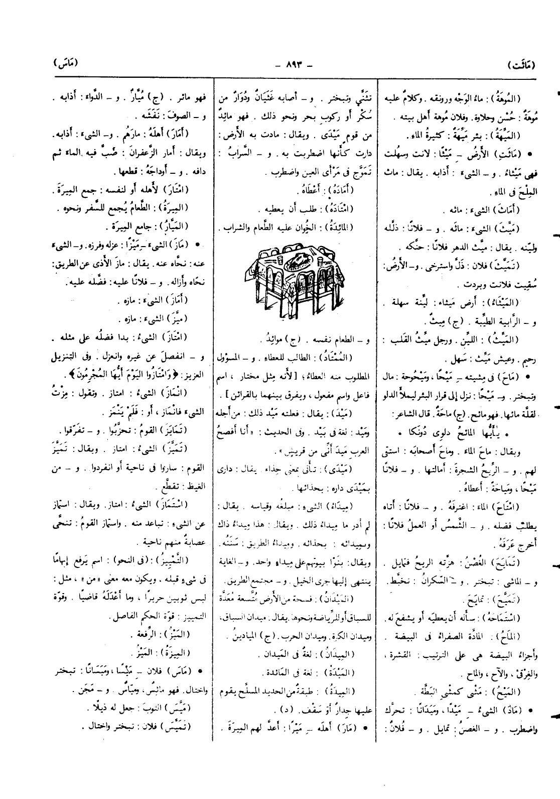 وَيُقَال ماح المَاء وماح أَصْحَابه استقى لَهُم وَالرِّيح الشَّجَرَة أمالتها وَفُلَانًا ميحا ومياحة أعطَاهُ