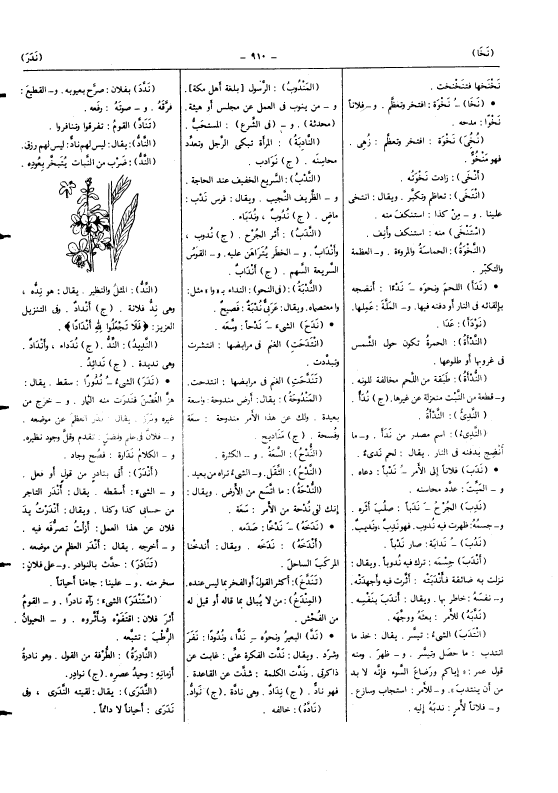 (النّدب) السَّرِيع الْخَفِيف عِنْد الْحَاجة والظريف النجيب وَيُقَال فرس ندب مَاض (ج) ندوب وندباء