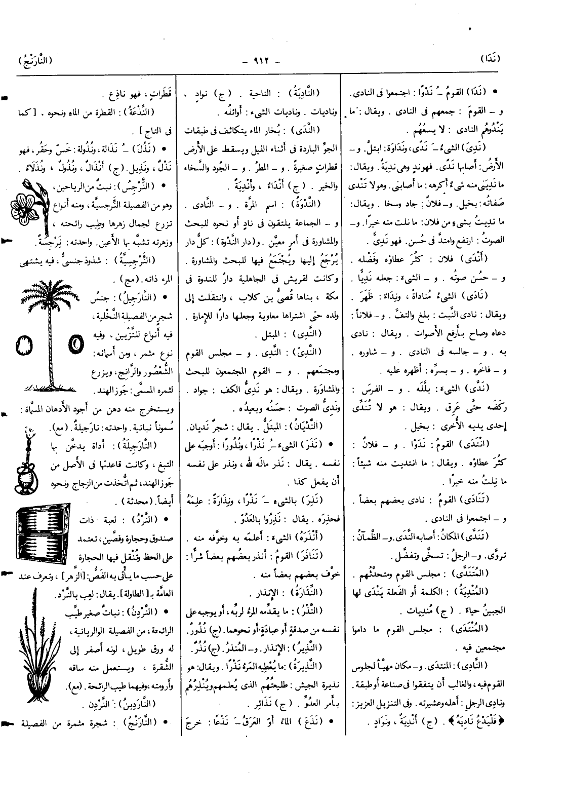 (الندي) الندي ومجلس الْقَوْم ومجتمعهم وَالْقَوْم المجتمعون للبحث والمشاورة وَيُقَال هُوَ ندي الْكَفّ جواد وندي الصَّوْت حسنه وبعيده