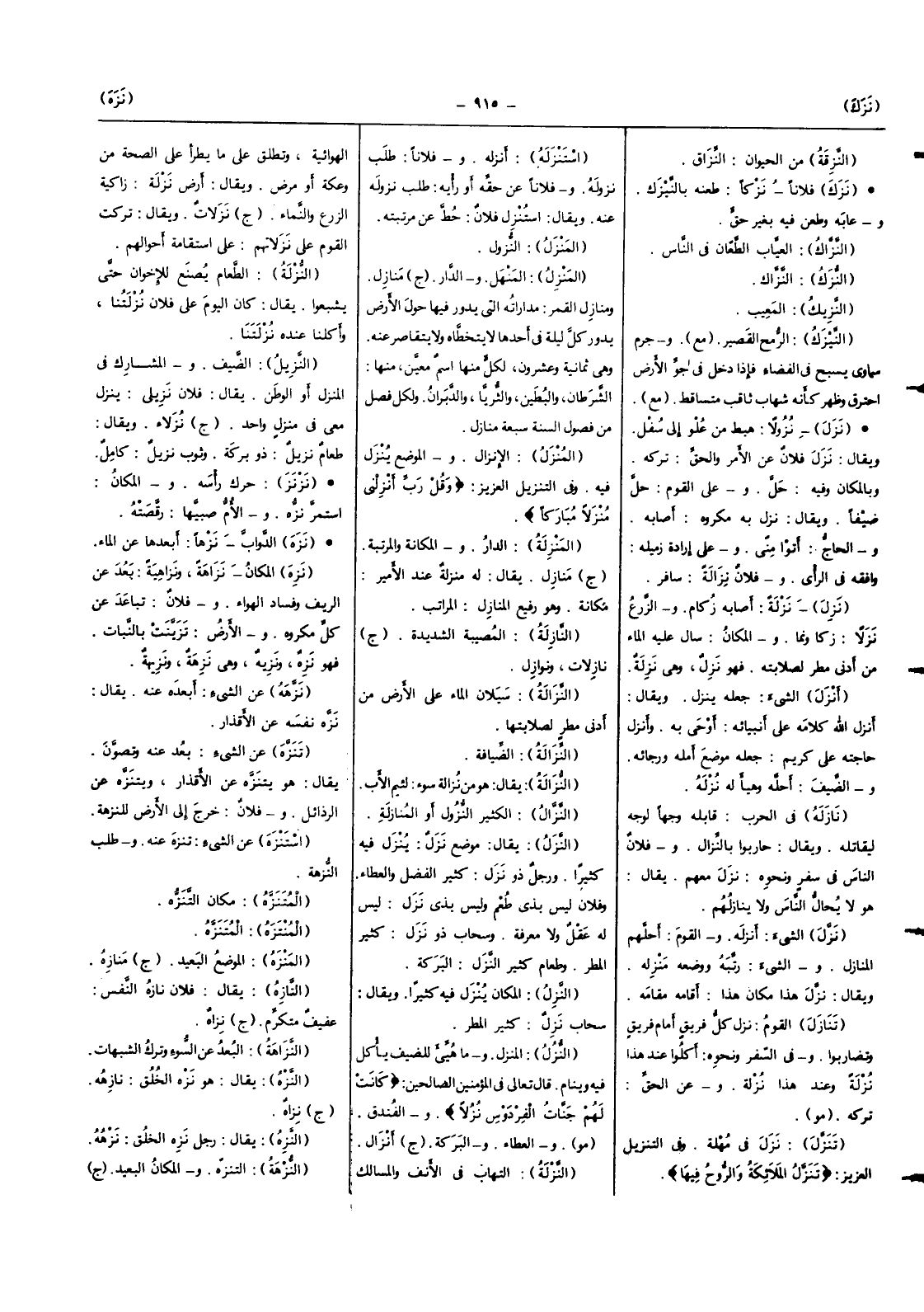 (الْمنزل) النُّزُول