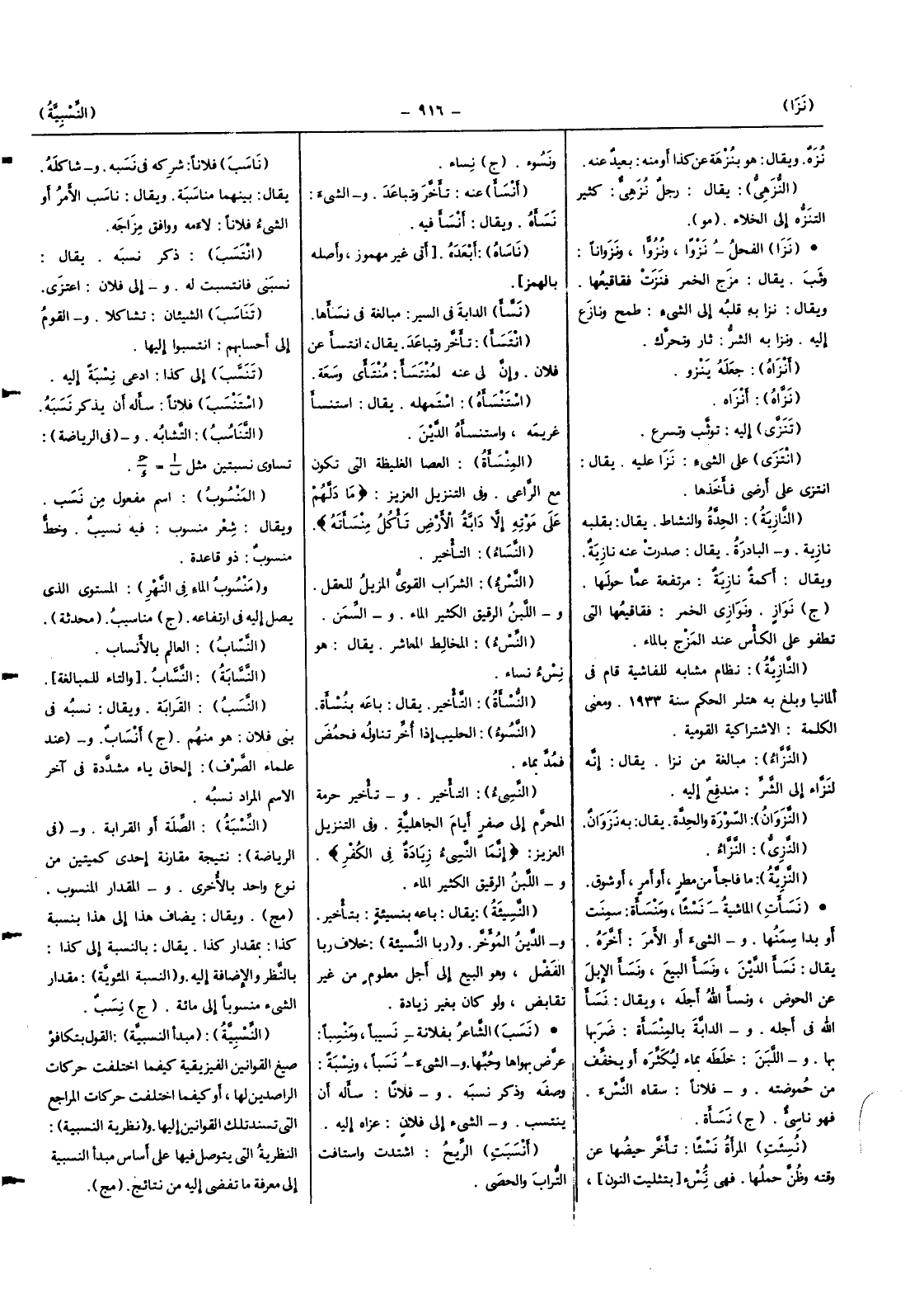 الْمَاشِيَة نسئا ومنسأة سمنت أَو بدا سمنها وَالشَّيْء أَو الْأَمر أَخّرهُ يُقَال نسأ الدّين ونسأ البيع ونسأ الْإِبِل عَن الْحَوْض ونسأ الله أَجله وَيُقَال نسأ الله فِي أَجله وَالدَّابَّة بالمنسأة ضربهَا بهَا وَاللَّبن خلطه بِمَاء ليكثره أَو يُخَفف من حموضته وَفُلَانًا سقَاهُ النسء فَهُوَ ناسئ (ج 9 نسأة