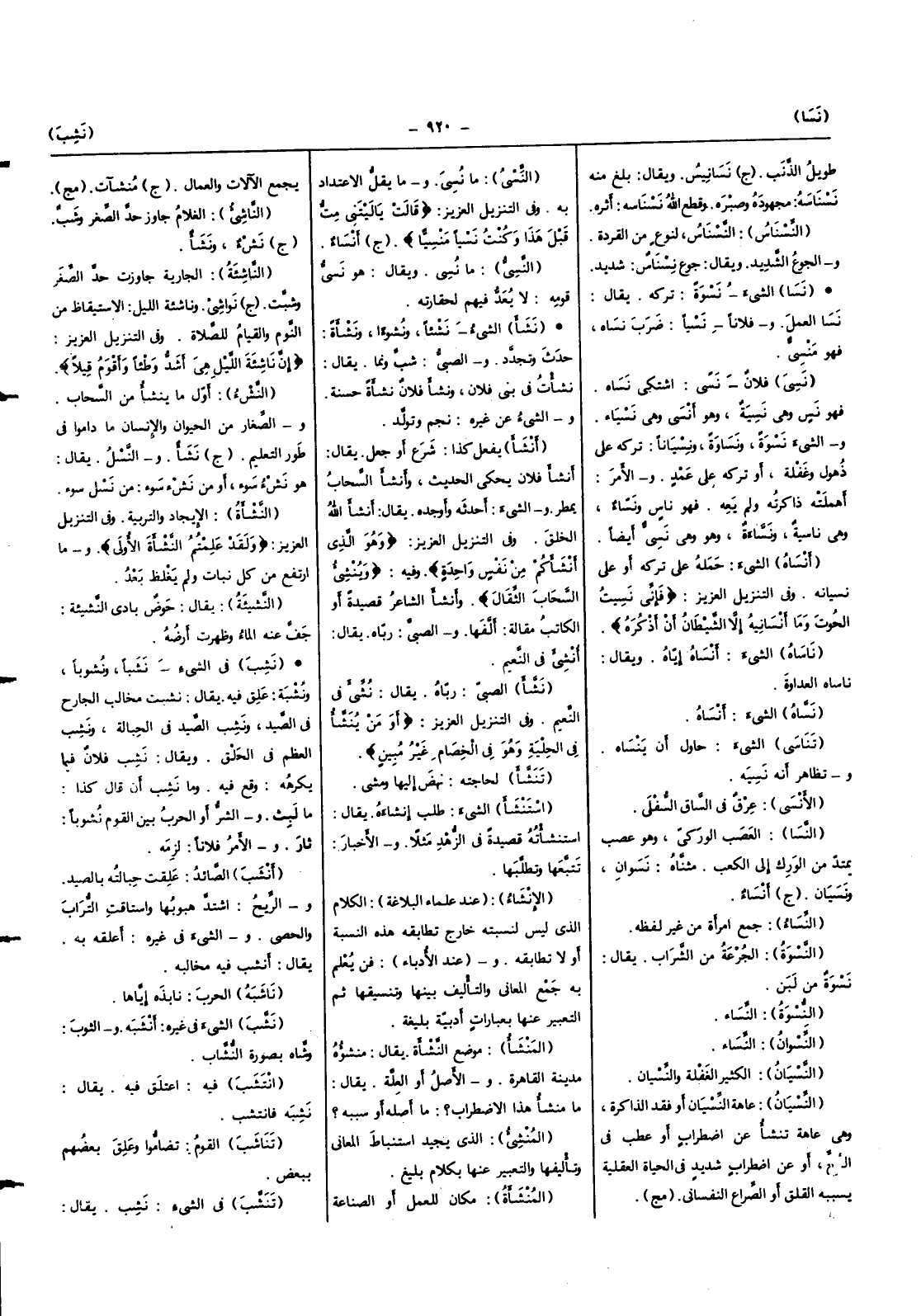 (نَشأ) الصَّبِي رباه يُقَال نشئ فِي النَّعيم وَفِي التَّنْزِيل الْعَزِيز {أَو من ينشأ فِي الْحِلْية وَهُوَ فِي الْخِصَام غير مُبين}