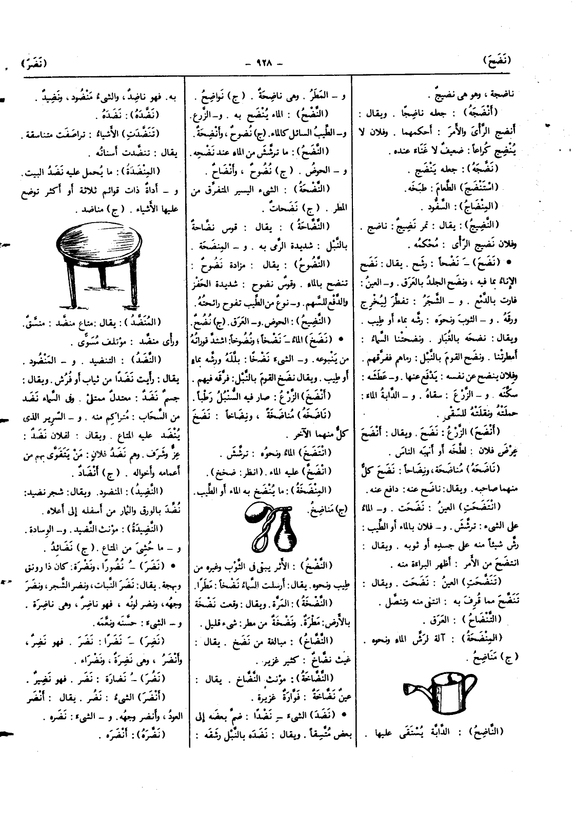 (المنضخة) مَا ينضخ بِهِ المَاء أَو الطّيب (ج) مناضخ