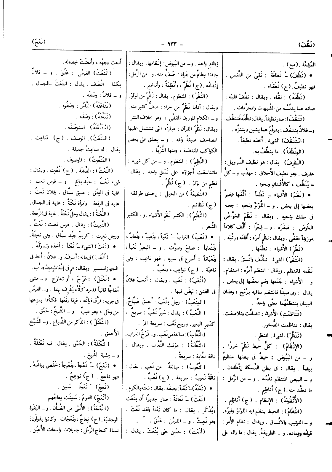 (نظفه) نقاه وَيُقَال نظف قلبه صانه عَمَّا يدنسه من الشُّبُهَات والمحرمات