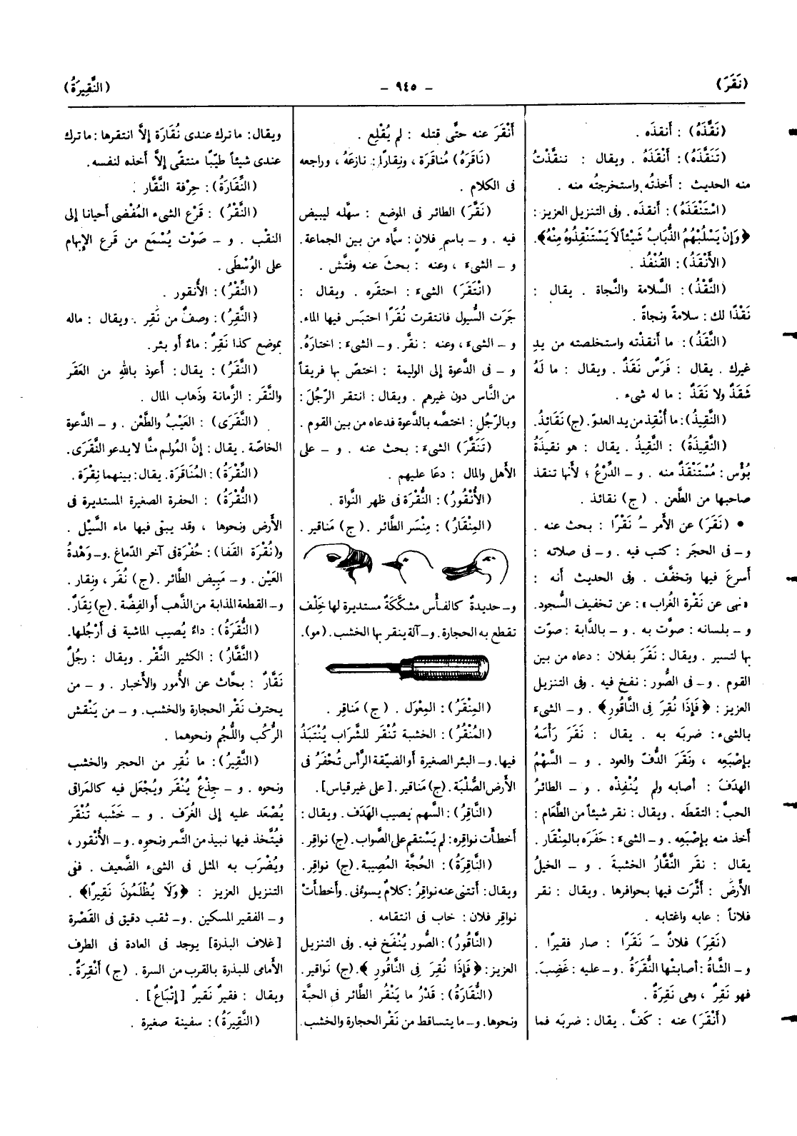 (تنقر) الشَّيْء بحث عَنهُ وعَلى الْأَهْل وَالْمَال دَعَا عَلَيْهِم