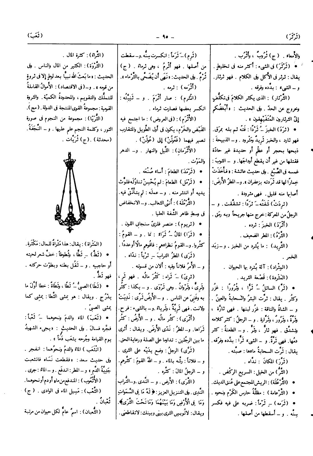 السَّائِل ثرا وثرورا غرز وَكثر يُقَال ثرت الْبِئْر والسحابة وَالْعين وَالشَّاة والناقة غزر لَبنهَا فَهِيَ ثارة وثرة وثرور وثرارة وَالرجل كثر كَلَامه وتشدق فَهُوَ ثار وثر والطعنة كثر دَمهَا فَهِيَ ثرة وَالشَّيْء ثرا بدده وفرقه يُقَال ثرت السحابة ماءها صبته