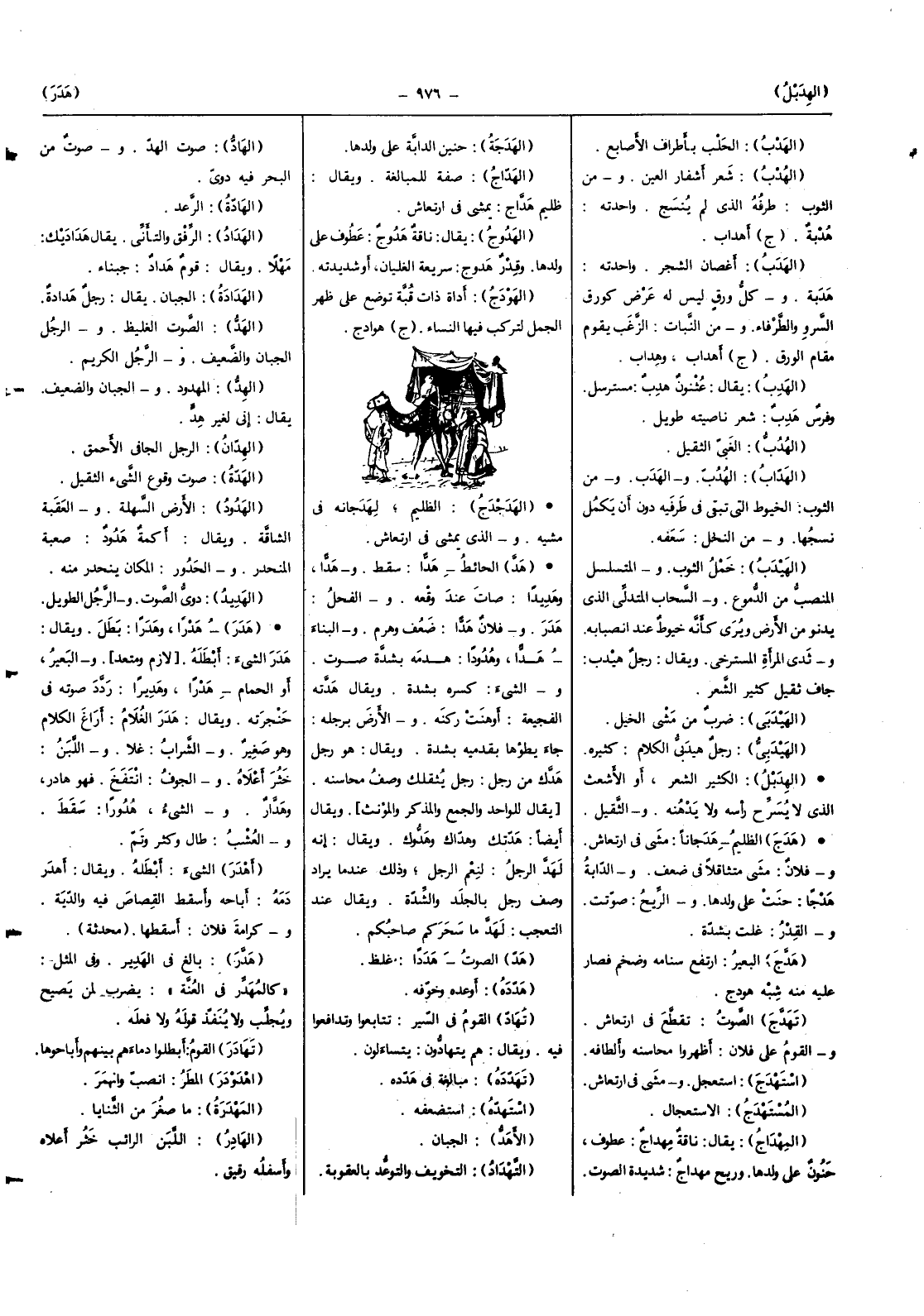 (الهدوج) يُقَال نَاقَة هدوج عطوف على وَلَدهَا وَقدر هدوج سريعة الغليان أَو شديدته