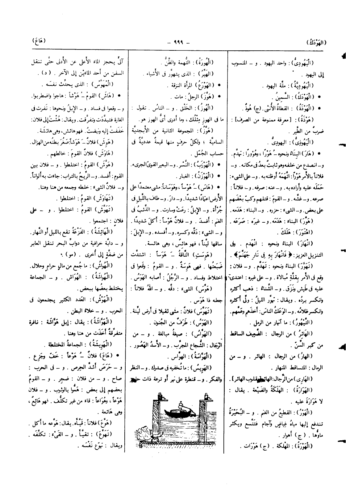 (الهور) القطيع من الْغنم والبحيرة تنْدَفع إِلَيْهَا مياه غِيَاض وآجام فتتسع وَيكثر مَاؤُهَا (ج) أهوار