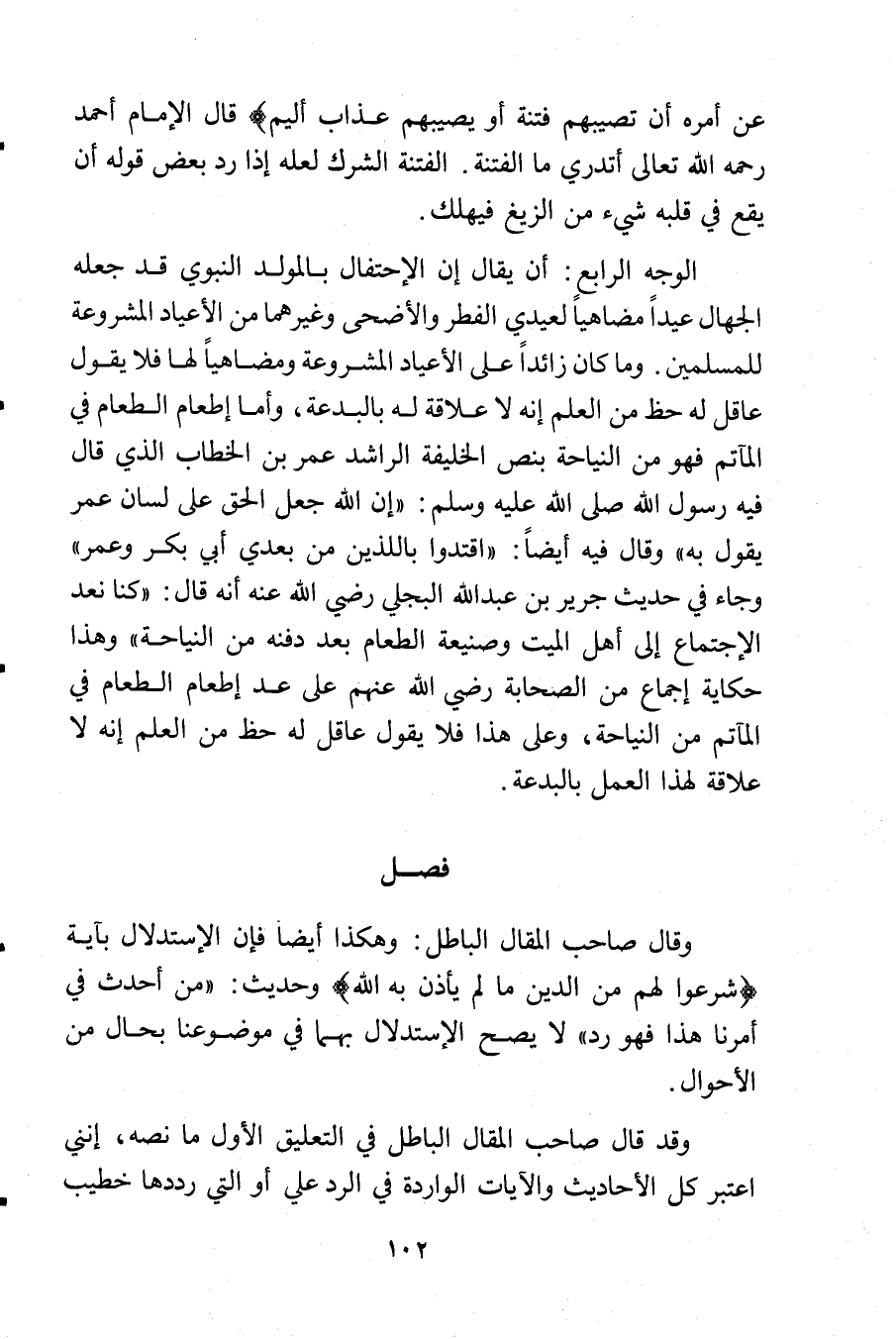 وقال صاحب المقال الباطل: وهكذا أيضا فإن الاستدلال بآية {شرعوا لهم من الدين ما لم يأذن به الله} وحديث: {من أحدث في أمرنا هذا فهو رد} لا يصح الاستدلال بهما في موضوعنا بحال من الأحوال.
