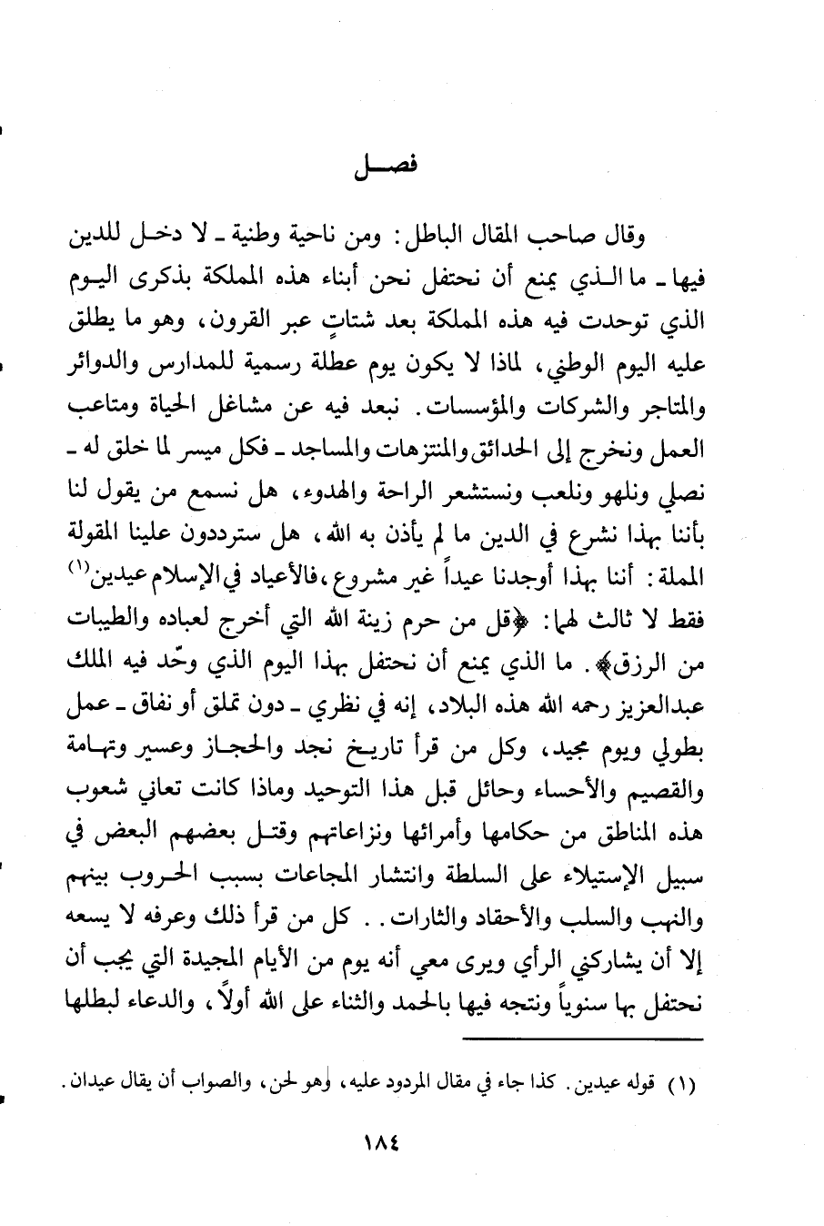 (¬1) قوله عيدين. كذا جاء في مقال المردود عليه, وهو لحن, والصواب أن يقال عيدان.