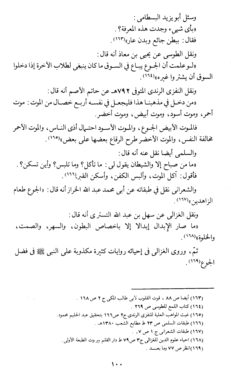 والشعراني نقل في طبقاته عن أبي محمد عبد الله الخراز أنه قال: (الجوع طعام الزاهدين) (¬5).