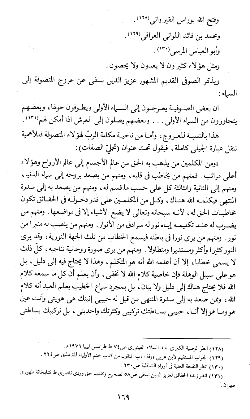 ويذكر الصوفي القديم المشهور عزيز الدين النسفي عن عروج المتصوفة إلى السماء: