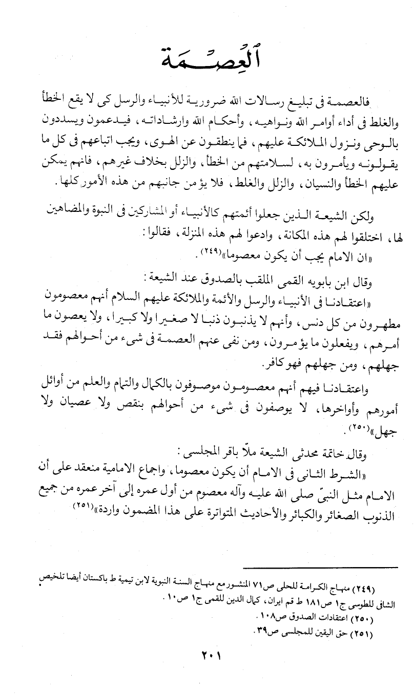 (¬1) منهاج الكرامة للحلي ص 71 المنشور مع منهاج السنة النبوية لابن تيمية ط باكستان أيضا تلخيص الشافي للطوسي ج 1 ص 181 قم إيران , كمال الدين القمي ج1 ص 10.