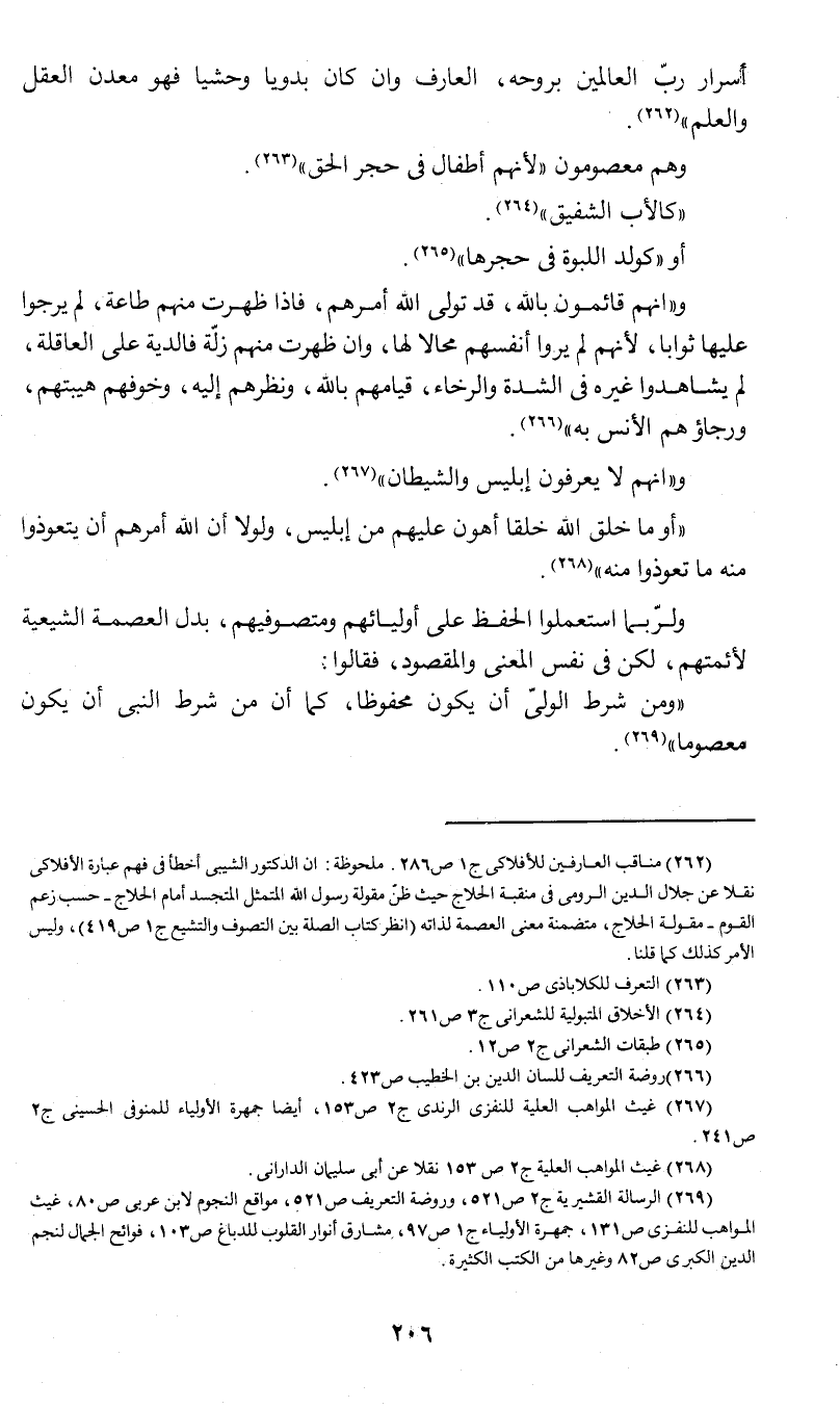 (¬1) مناقب العارفين للأفلاكي ج 1 ص 286 ملحوظة: أن الدكتور الشيبي أخطأ في فهم عبارة الأفلاكي نقلا عن جلال الدين الرومي في منقبة الحلاج حيث ظنّ مقولة رسول الله المتمثل المتجسد أمام الحلاج - حسب زعم القوم - مقولة الحلاج , متضمنة معنى العصمة لذاته (انظر كتاب الصلة بين التصوف والتشيع ج 1 ص 419) , وليس الأمر كذلك كما قلنا.