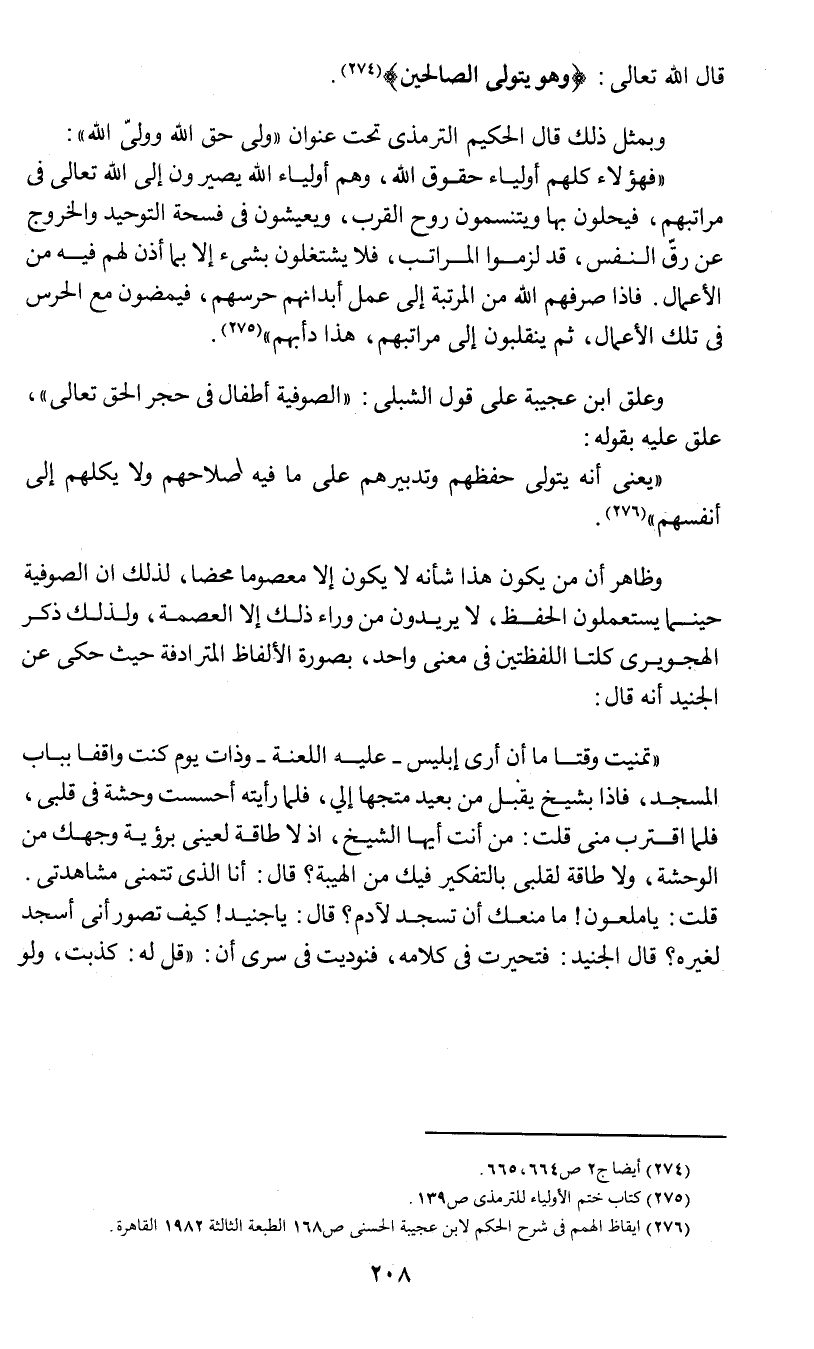 وظاهر أن من يكون هذا شأنه لا يكون إلا معصوما محضا , لذلك أن الصوفية حينما يستعملون الحفظ , لا يريدون من وراء ذلك إلا العصمة , ولذلك ذكر الهجويري كلتا اللفظتين في معنى واحد , بصورة الألفاظ المترادفة حيث حكى عن الجنيد أنه قال ك