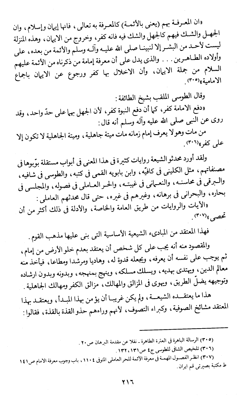 (¬3) انظر الفصول المهمة في معرفة الأئمة للحر العاملي المتوفى 1104 , وباب وجوب معرفة الإمام ص 141 ط مكتبة بصيرتي قم إيران.