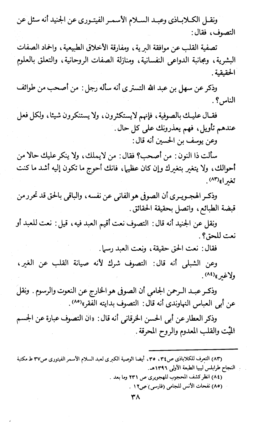 (¬1) التعرف للكلاباذي ص 34 , 35 , أيضا الوصية الكبرى لعبد السلام الأسمر الفيتوري ص 37 ط مكتبة النجاح طرابلس ليبيا الطبعة الأولى 1396 هـ.