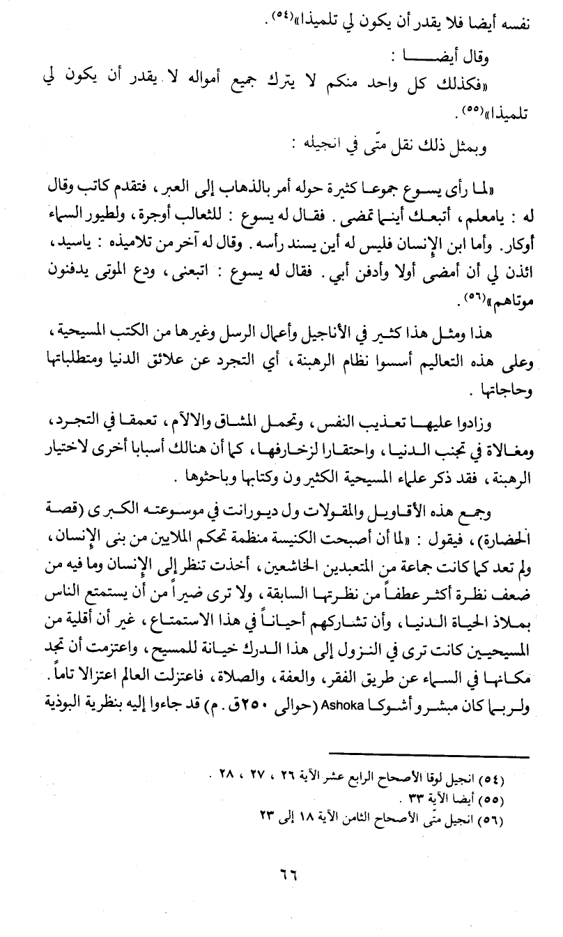 هذا ومثل هذا كثير في الأناجيل وأعمال الرسل وغيرها من الكتب المسيحية , وعلى هذه التعاليم أسسوا نظام الرهبنة , أي التجرد عن علائق الدنيا ومتطلباتها وحاجاتها.