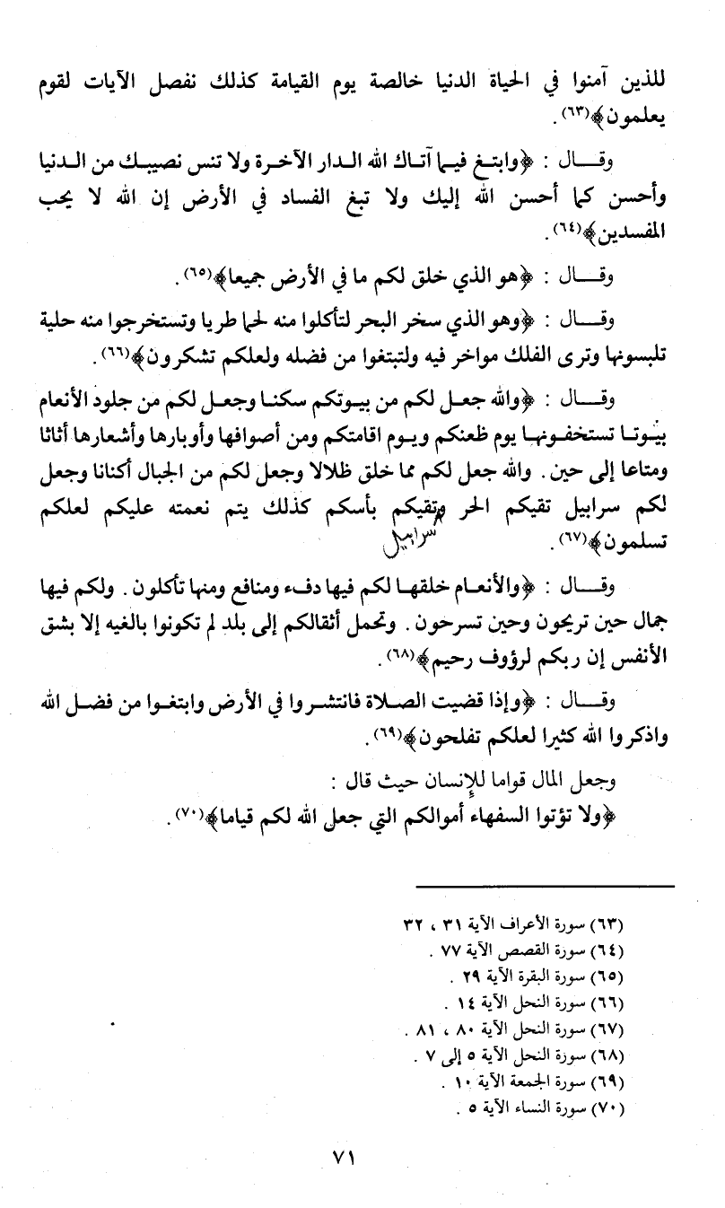 وقال: {وَابْتَغِ فِيمَا آتَاكَ اللَّهُ الدَّارَ الْآخِرَةَ وَلَا تَنسَ نَصِيبَكَ مِنَ الدُّنْيَا وَأَحْسِن كَمَا أَحْسَنَ اللَّهُ إِلَيْكَ وَلَا تَبْغِ الْفَسَادَ فِي الْأَرْضِ إِنَّ اللَّهَ لَا يُحِبُّ الْمُفْسِدِينَ} (¬2)
